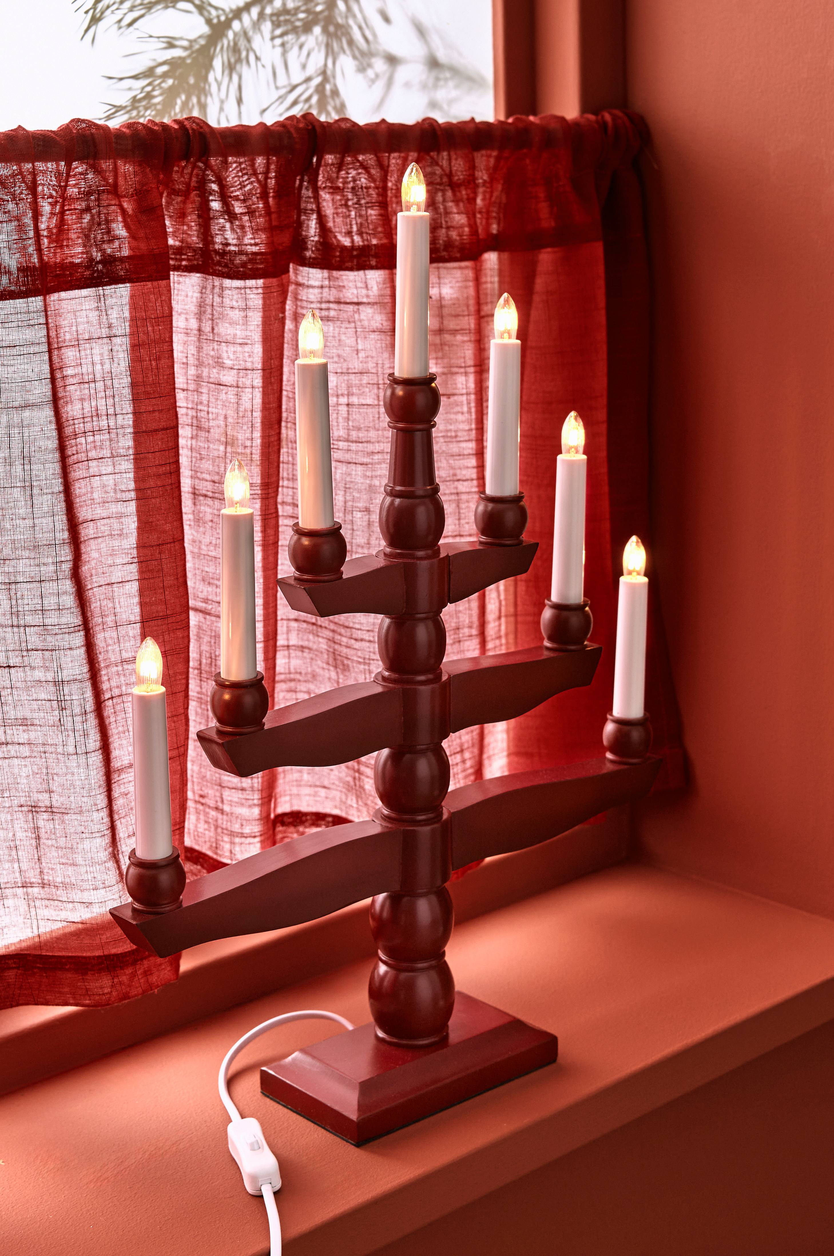 Dekorativ ljusstake av trä som skapar en härlig adventsstämning i hemmet. 7 ljuskällor.