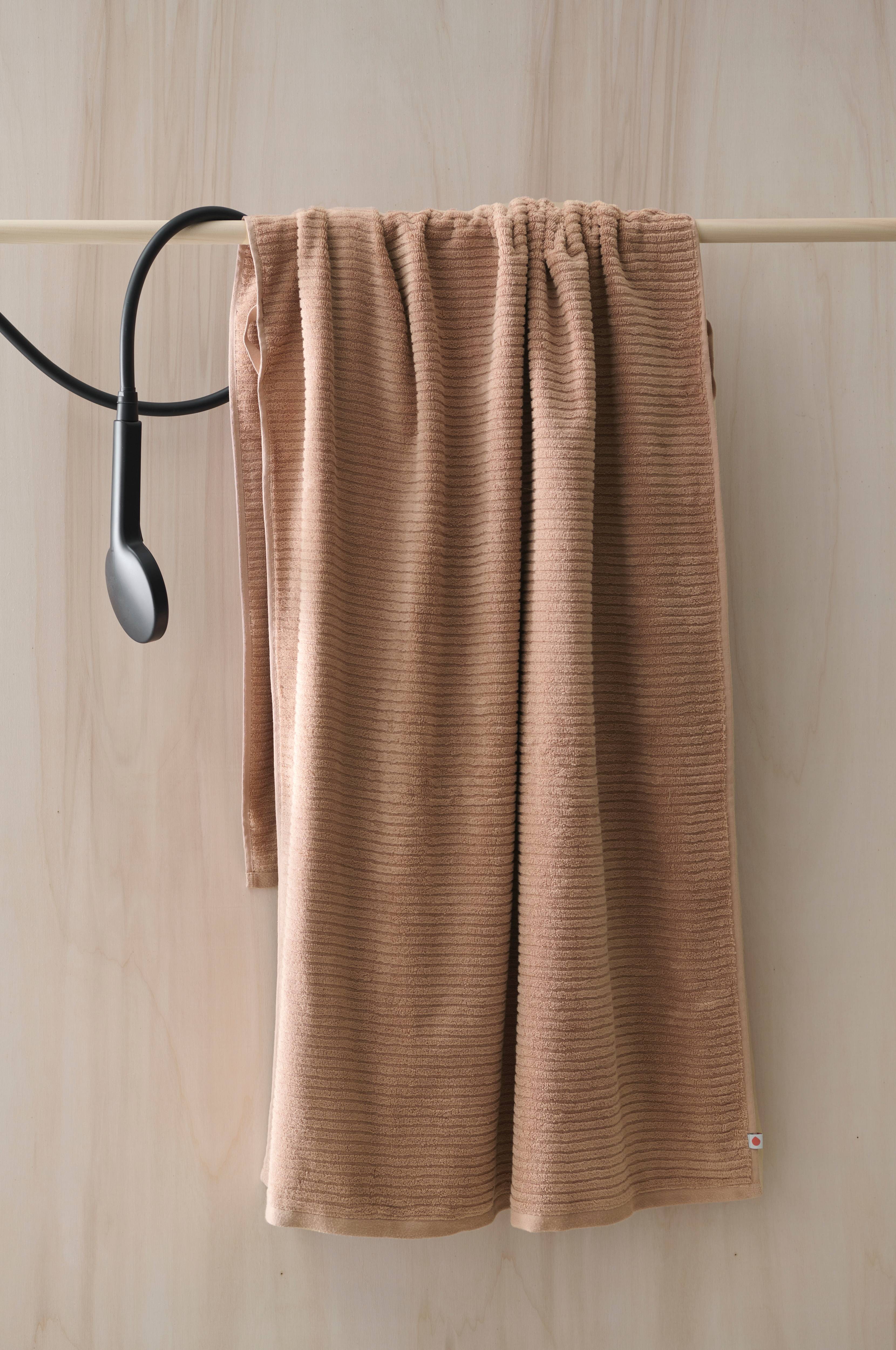 Badhandduk Soft 90x180 cm från Pure i supermjuk, ribbad frotté av bomull. Handduken är i tätvävd kvalitet, 550 g/m2 och har öglor av Zero Twist-typ, vilket innebär att trådarna i öglorna inte tvinnats och därmed gör att handduken är extra mjuk och lätt, har hög uppsugningsförmåga och torkar snabbt.