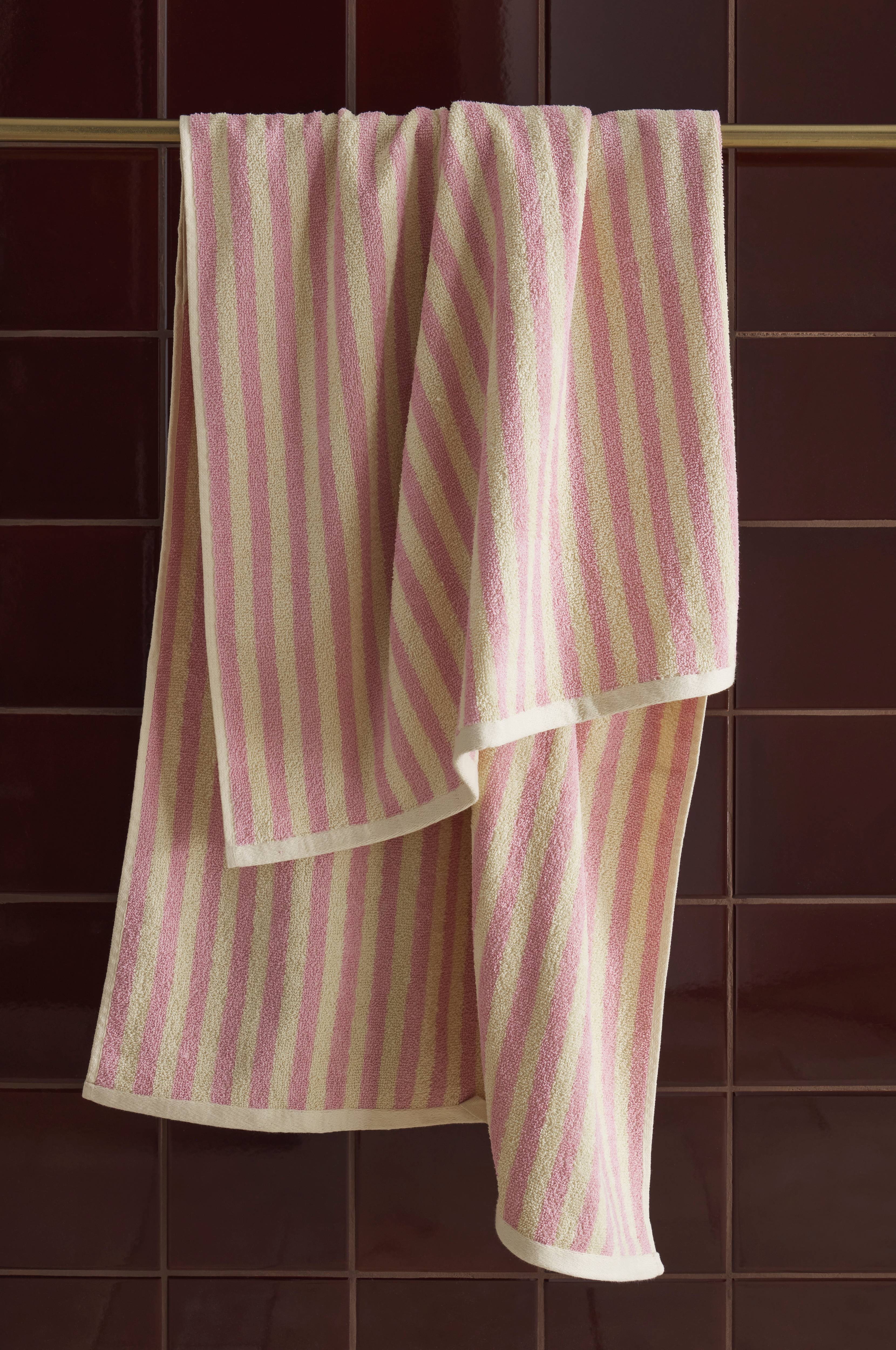 • Badhandduk i mjuk, skön bomullsfrotté med garnfärgade ränder• Stl 70x140 cm