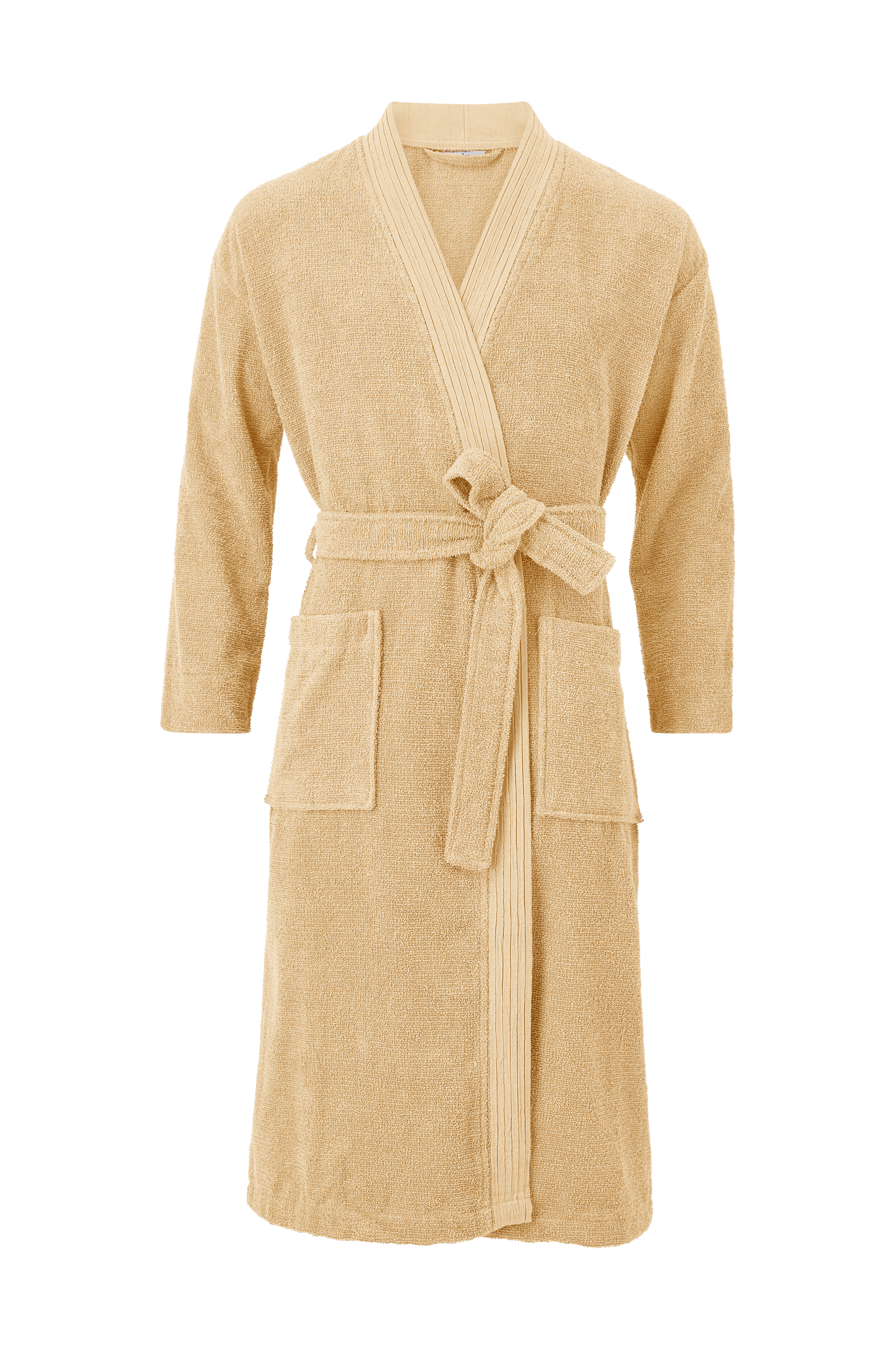 Badrock av mjuk öglefrotté i en mix av lin och bomull gör att badrocken har en mycket hög uppsugningsförmåga samtidigt som den bomullsmjuka känslan bibehålls. Bårder med lagda veck fram. Två fickor och knytskärp i hällor.