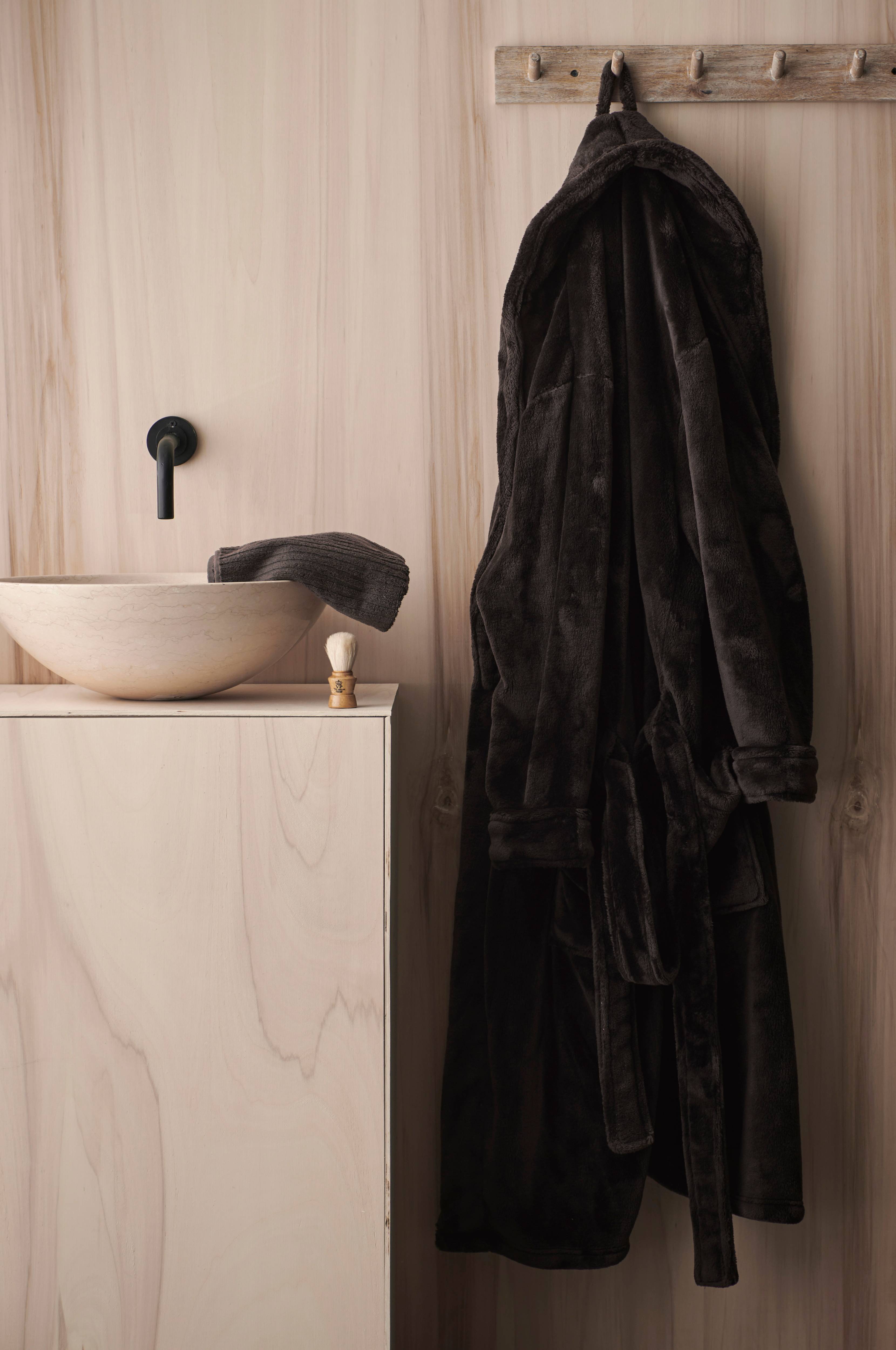 Badrock av mjuk, fluffig microfleece i extra tjock kvalitet. Knytskärp och två fickor. Längd ca 128 cm i stl M.