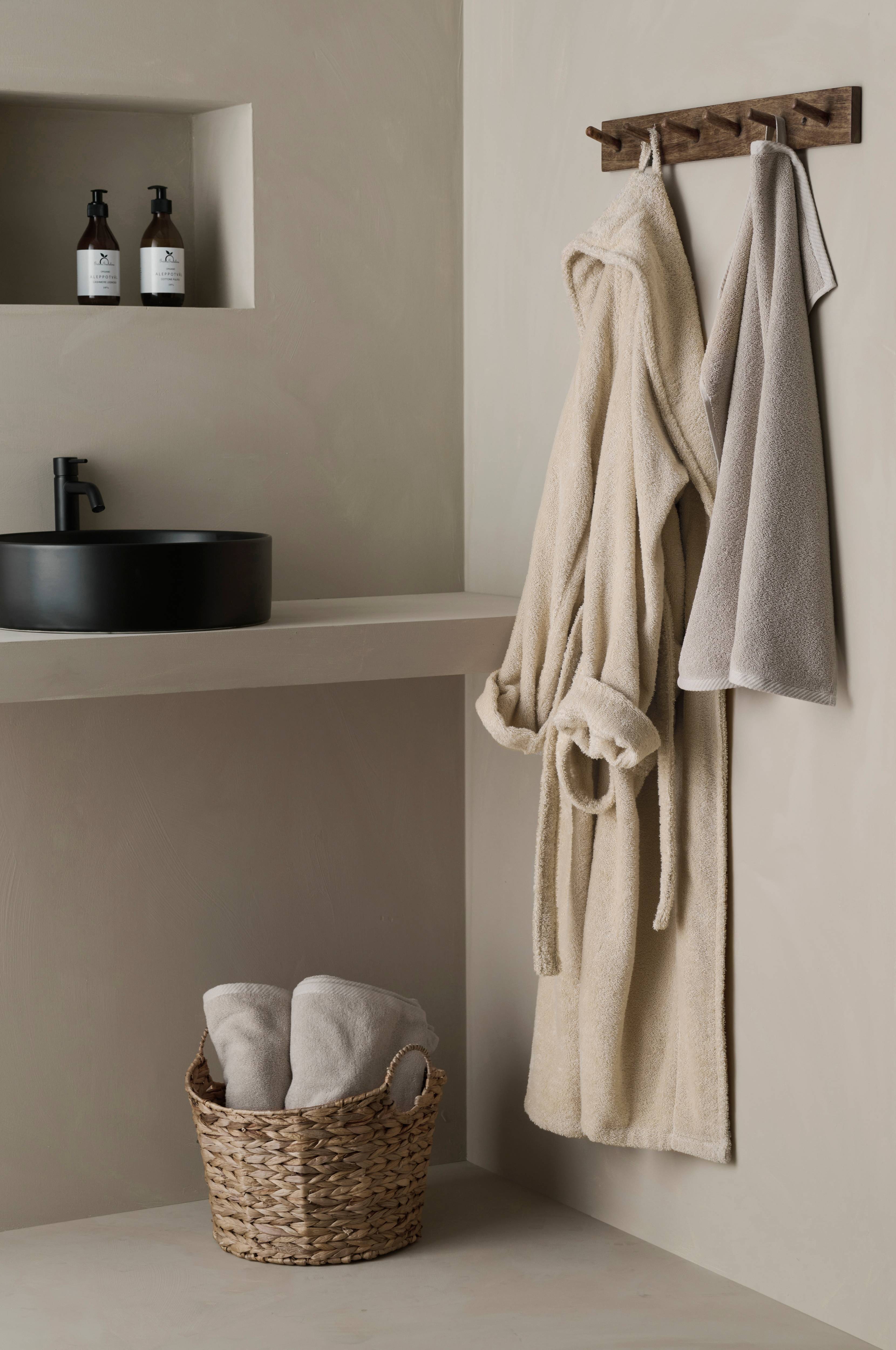Badrock av 100% bomullsfrotté med krage, två fickor och knytskärp. Längd 120 cm i stl 38/40.