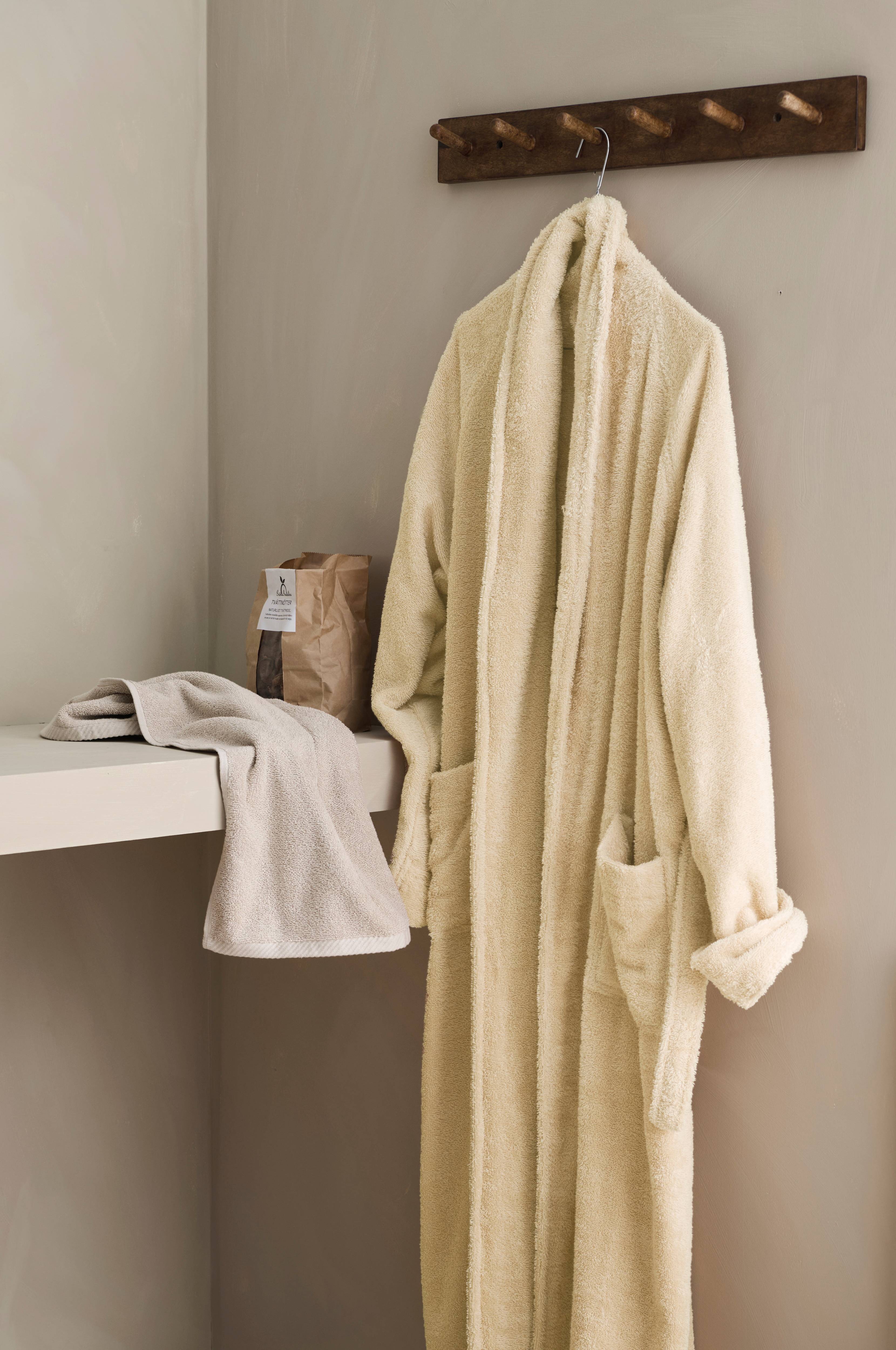 Badrock av 100% bomullsfrotté med krage, två fickor och knytskärp. Längd 120 cm i stl 38/40.