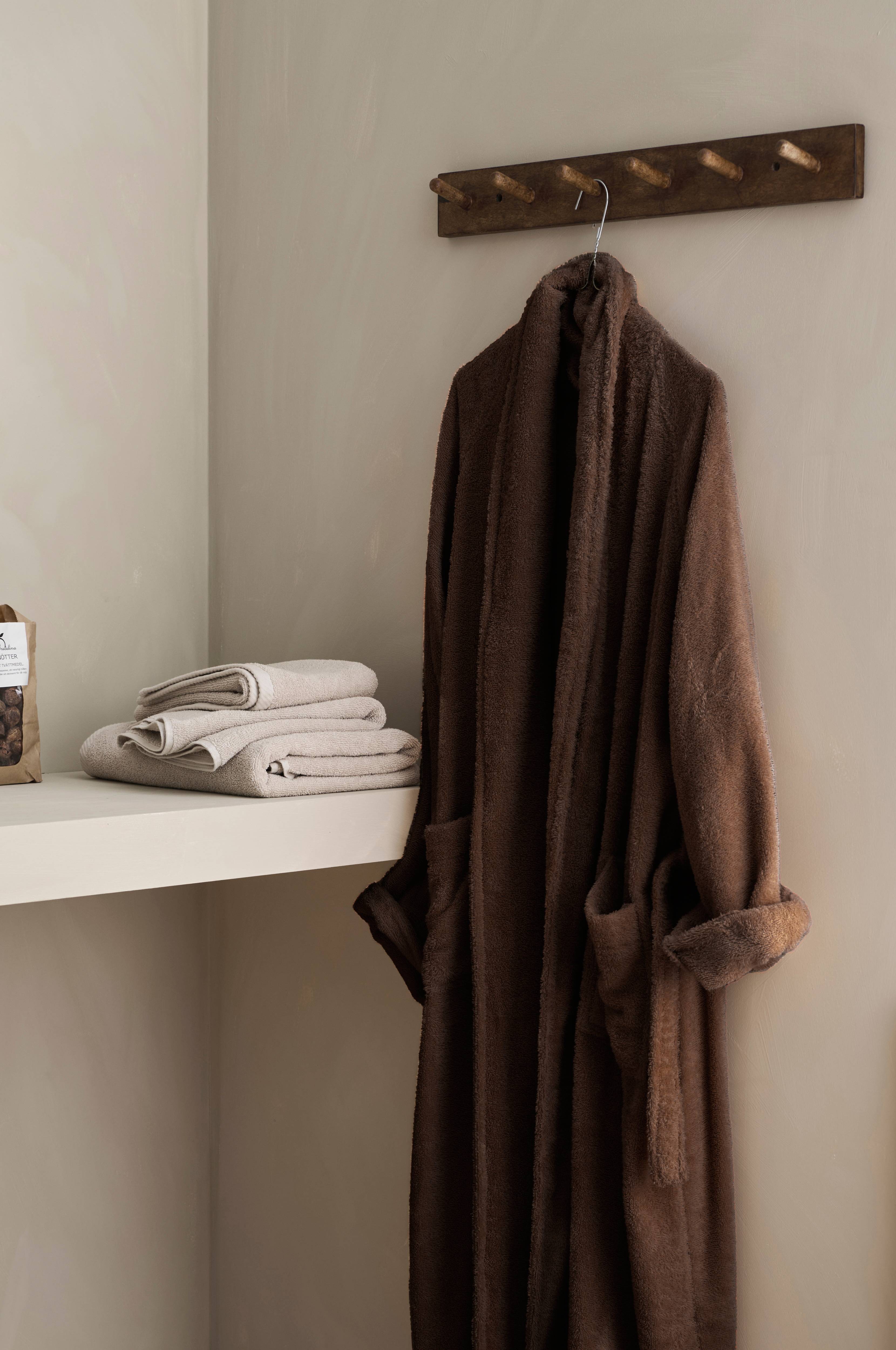 Badrock av 100% bomullsfrotté med krage, två fickor och knytskärp. Längd 120 cm i stl 38/40.