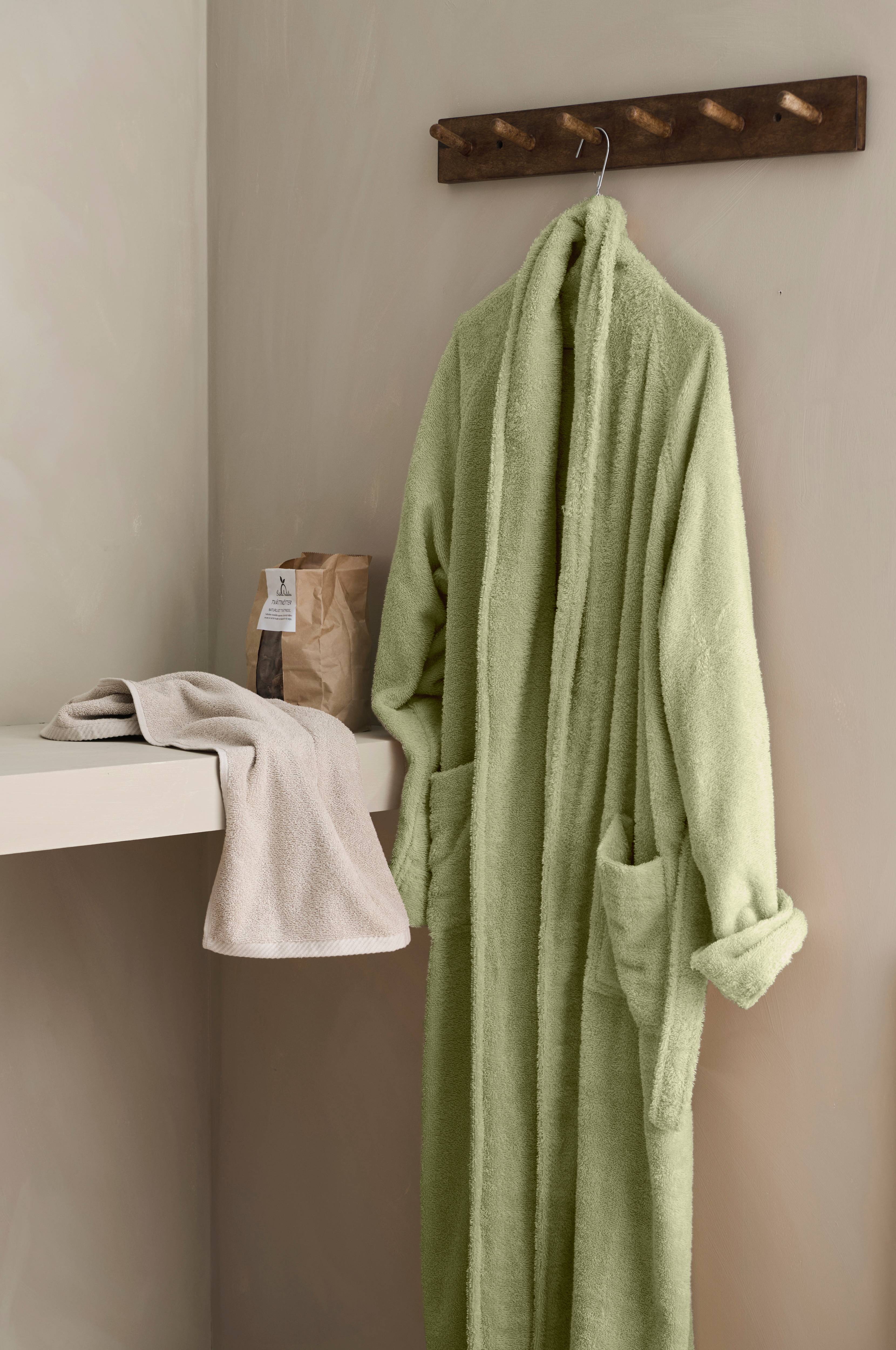Badrock av 100% bomullsfrotté med krage, två fickor och knytskärp. Längd 120 cm i stl 38/40.