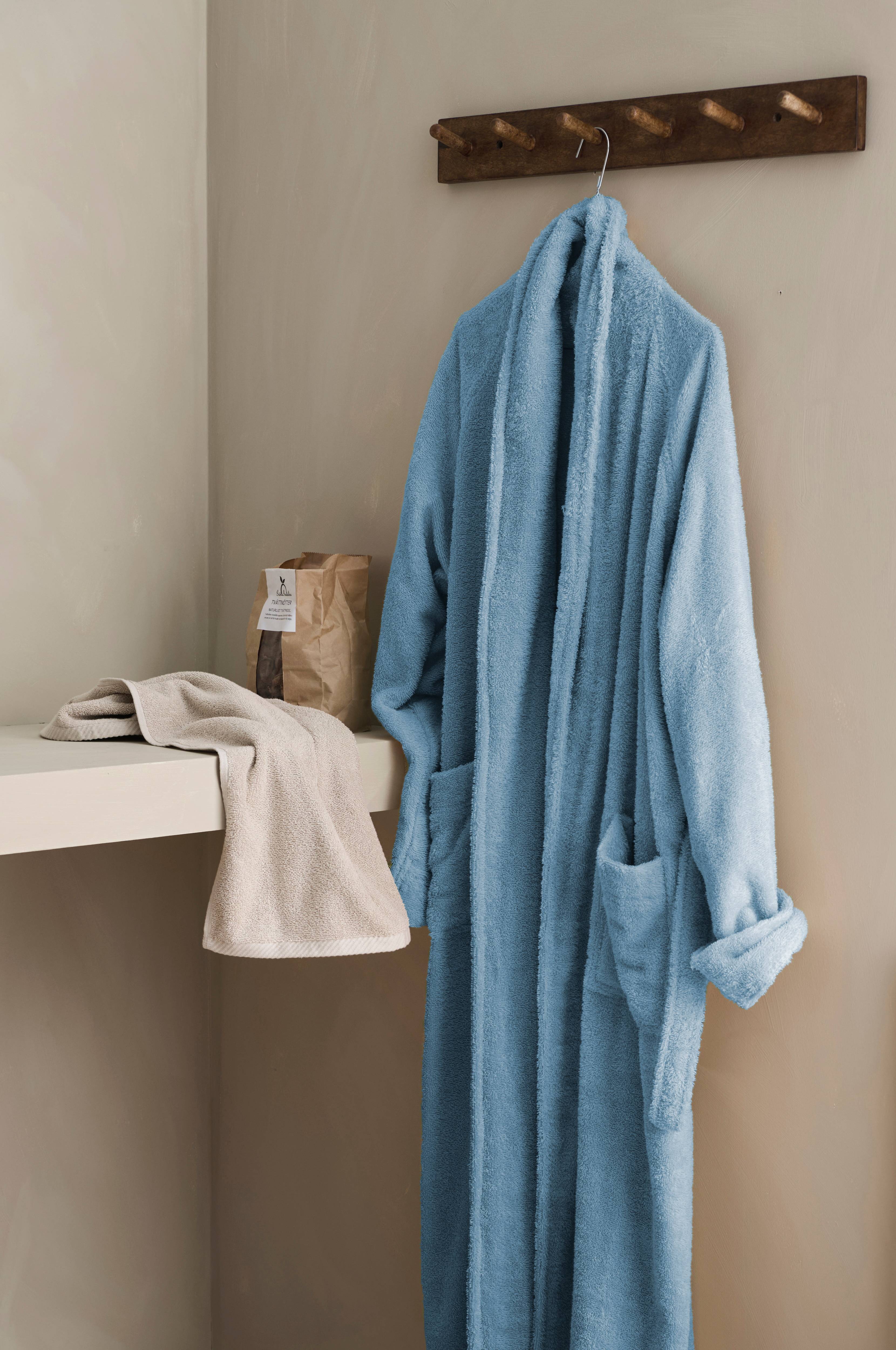 Badrock av 100% bomullsfrotté med krage, två fickor och knytskärp. Längd 120 cm i stl 38/40.