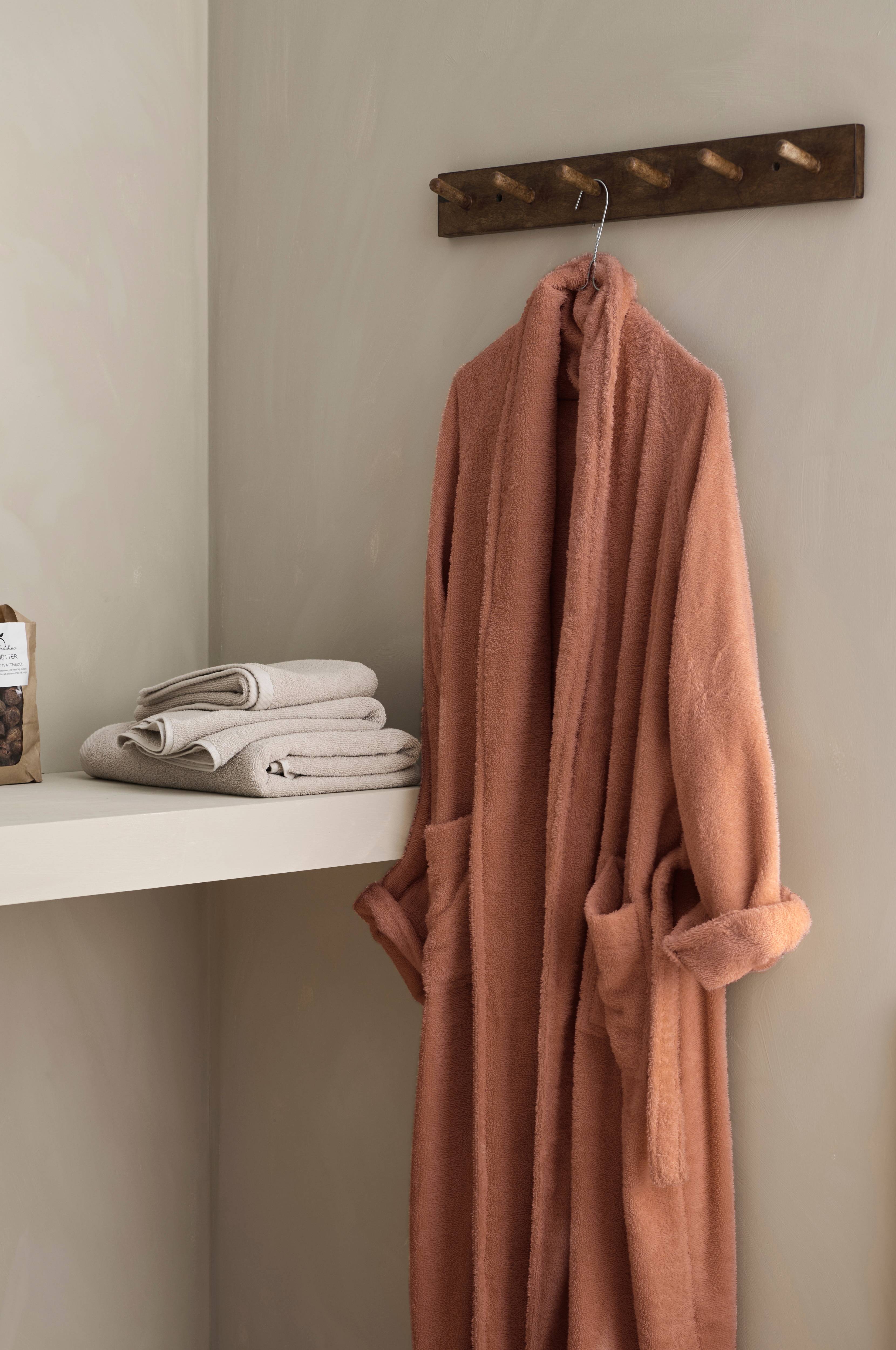 Badrock av 100% bomullsfrotté med krage, två fickor och knytskärp. Längd 120 cm i stl 38/40.