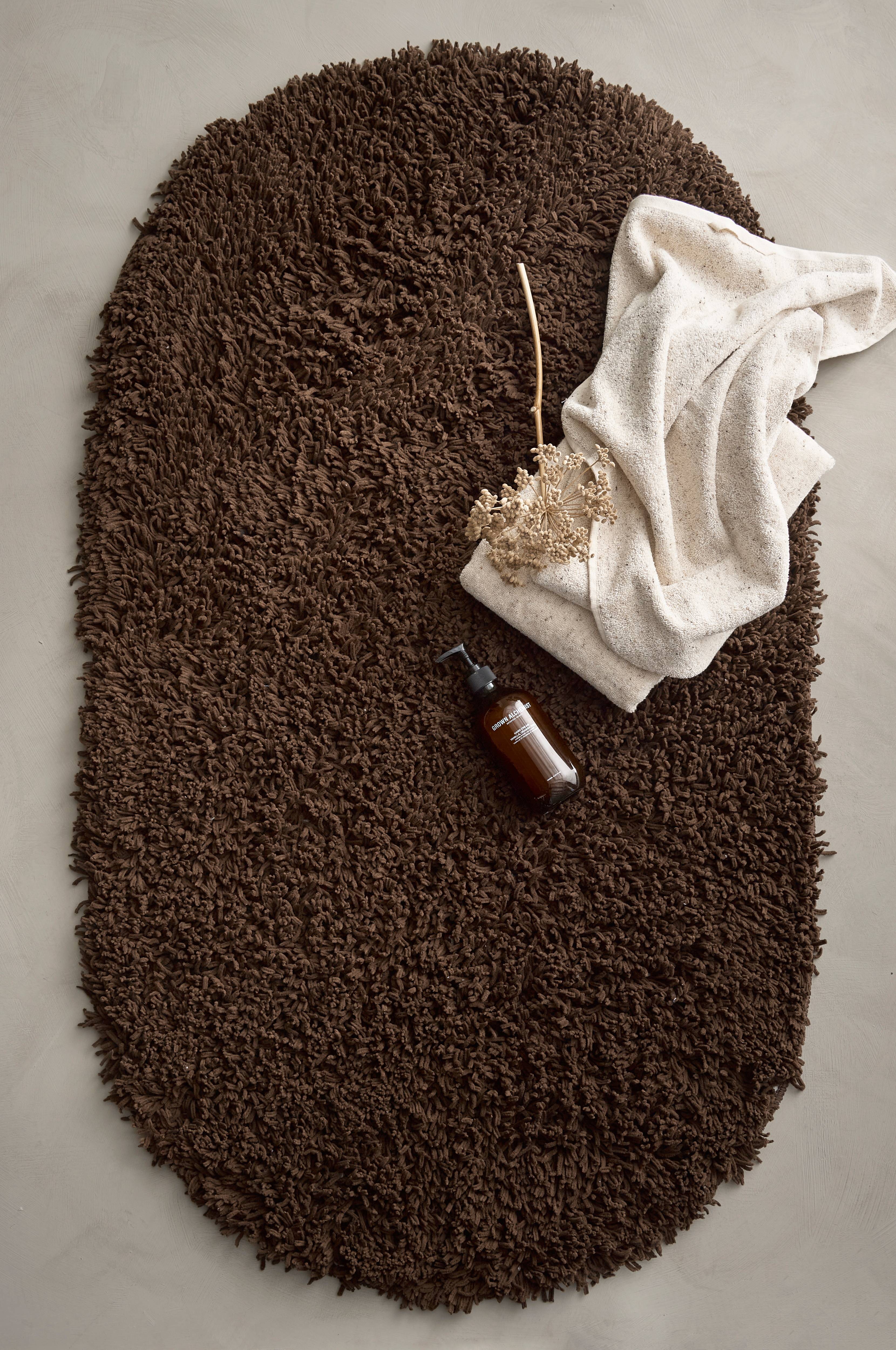 Badrumsmatta i mjukt, återvunnet chenillegarn.