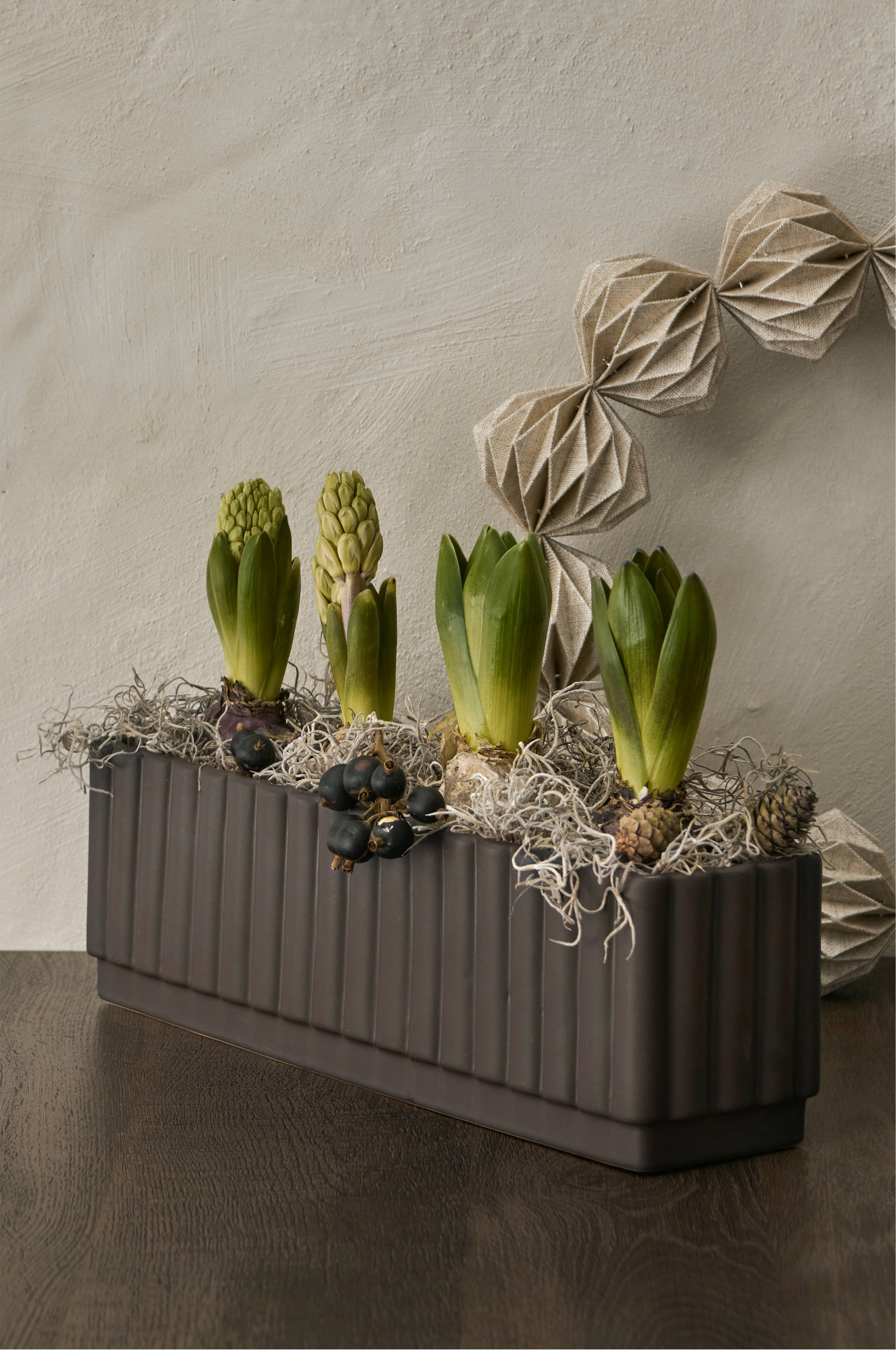 Blomlåda / kruka av stengods med ribbstruktur, perfekt att plantera julgruppen i. Vattentät. Rengörs för hand.