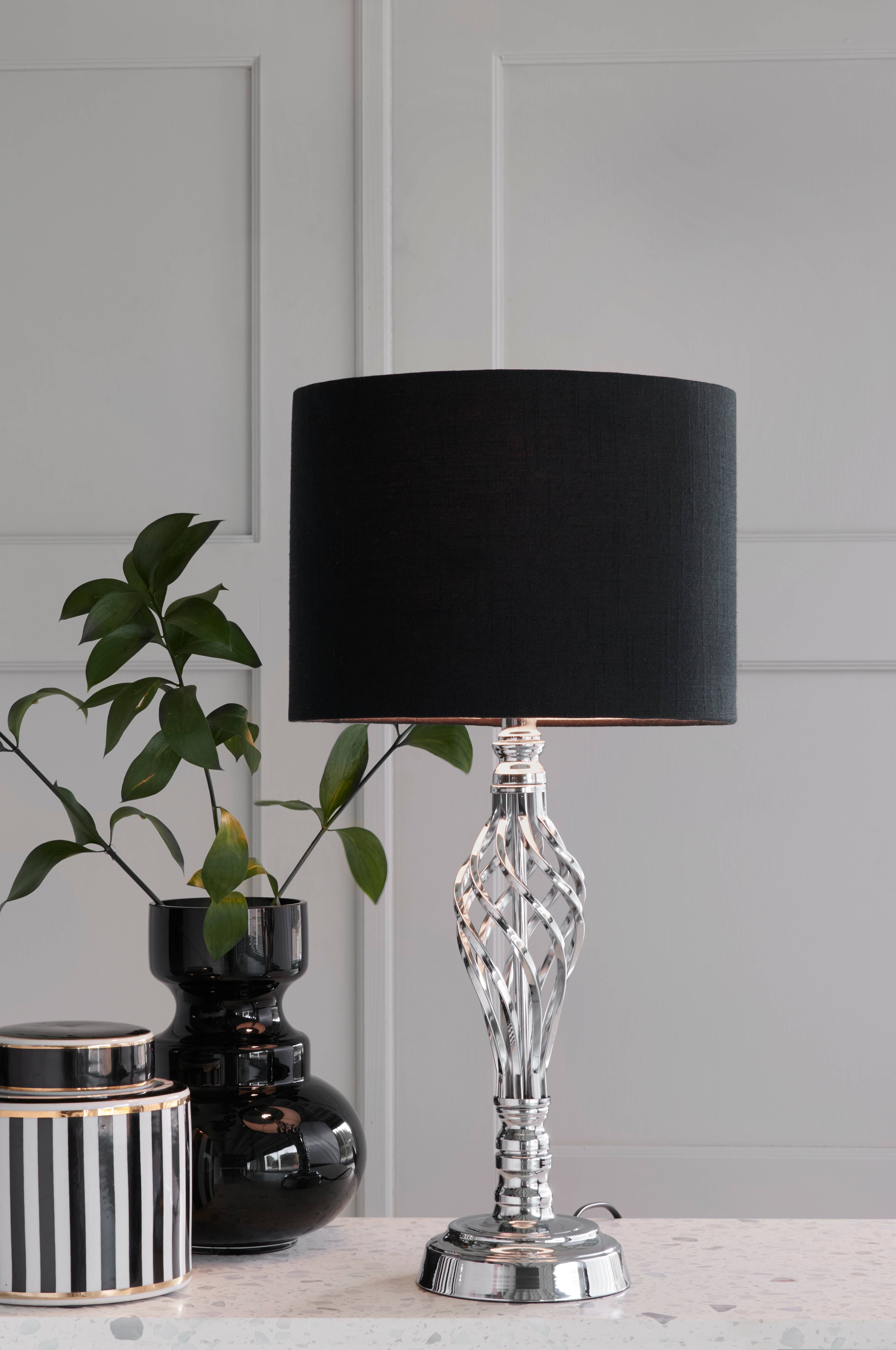 med metallfot och textilskärm i bomull. Sladdlängd 150 cm. Höjd 55 cm. Ø 28 cm. E27. Max 40W.