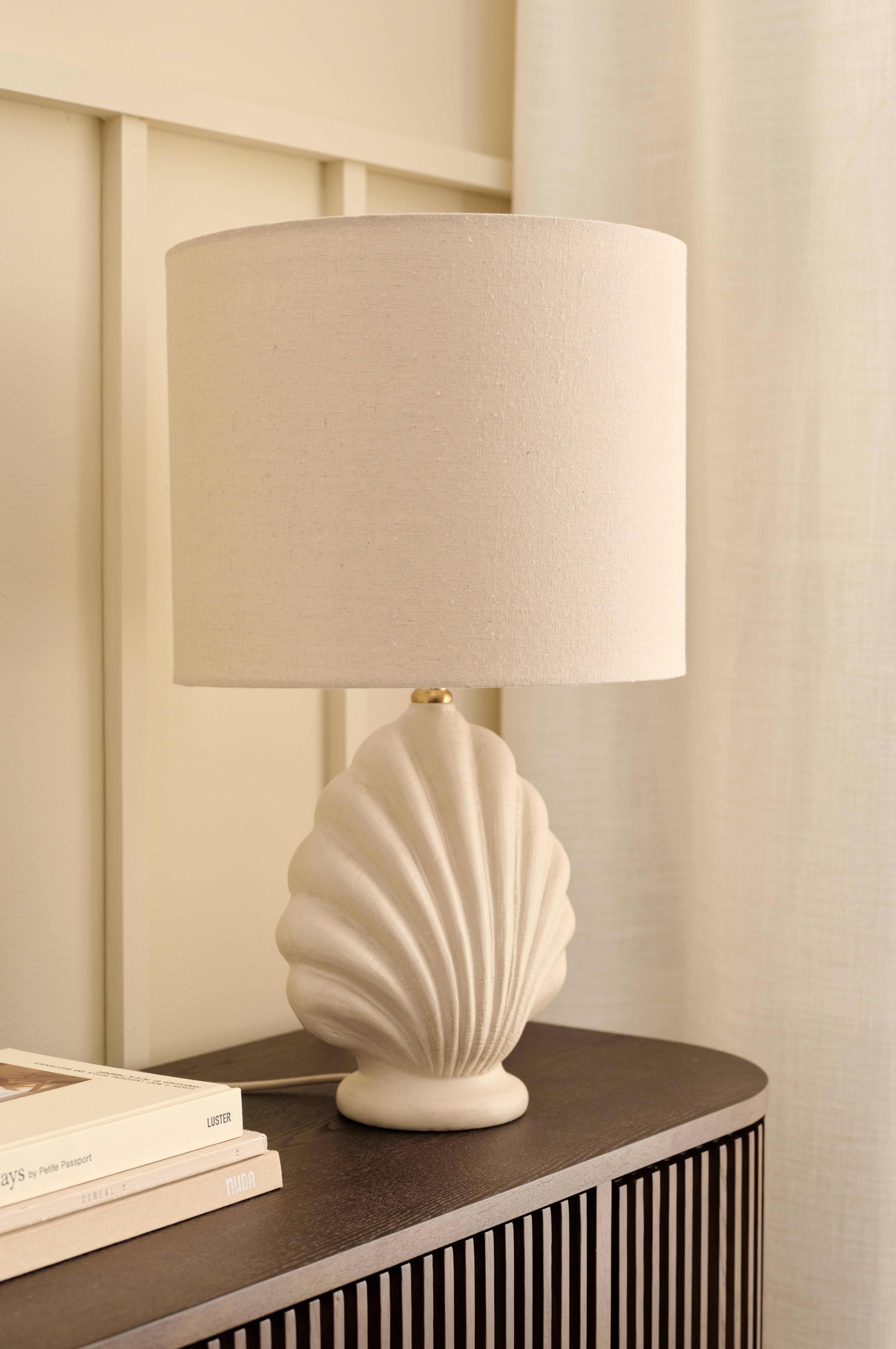 • Snäckformad lampfot i polyresin• Lampskärm i bomull• Textilsladd med strömbrytare• Ljuskälla ingår ej