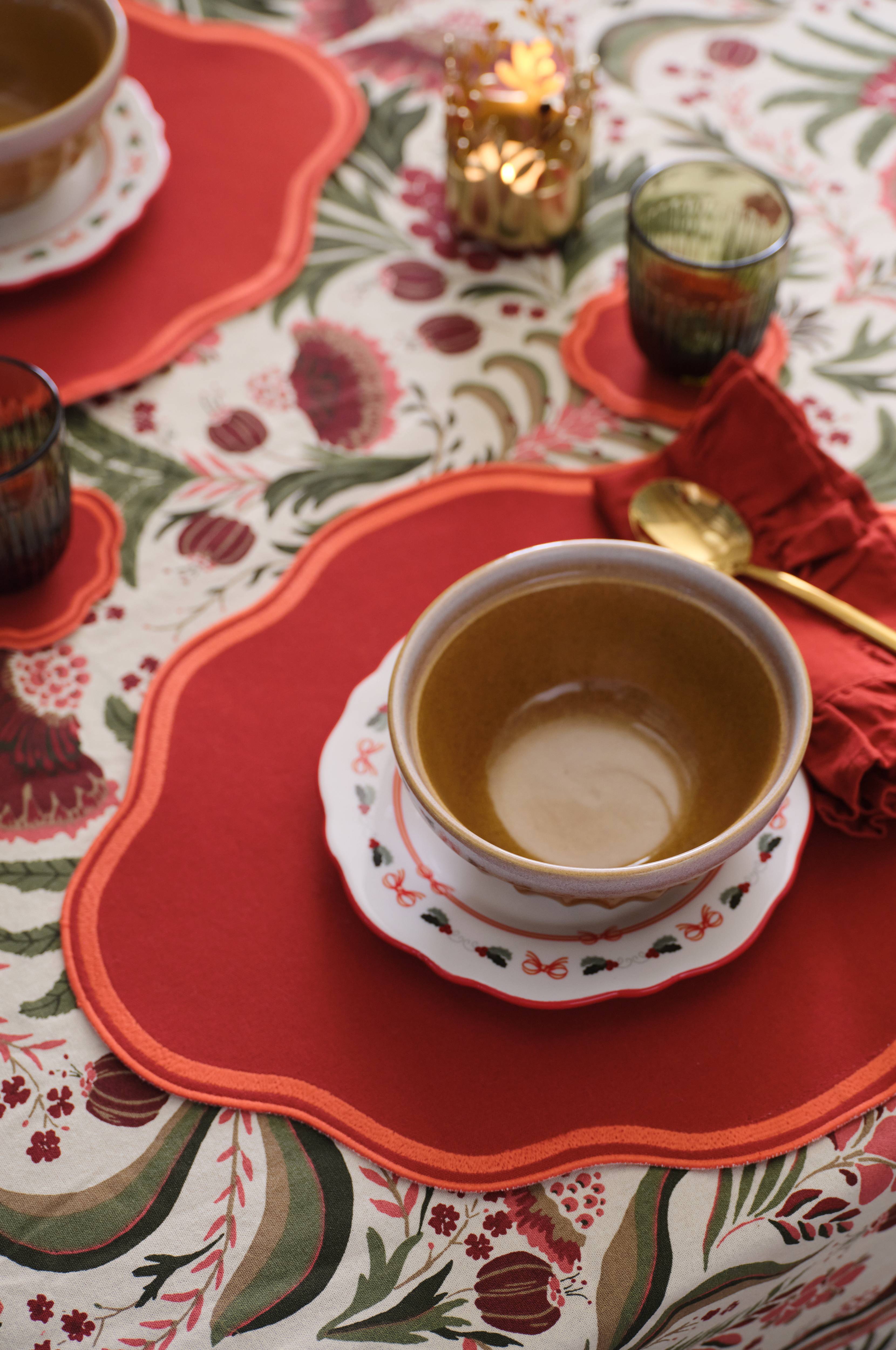 • Vävd, enfärgad bordstablett med dubbla lager tyg med fusingpapper i mitten.• Broderi runt om
