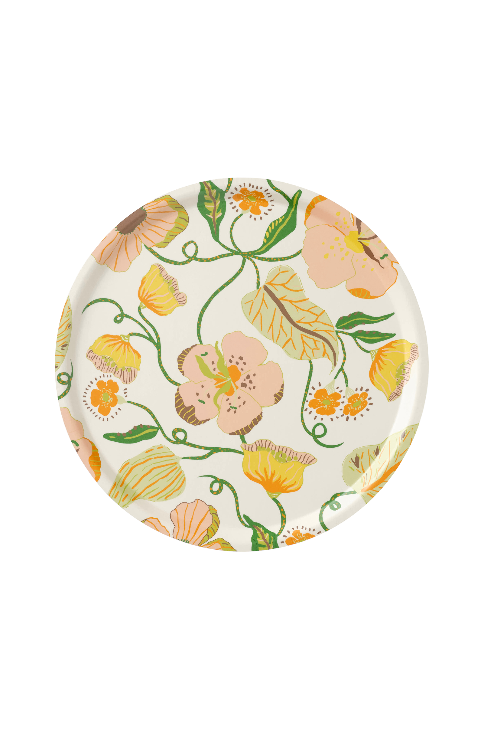 • Rund, handgjord bricka i björk• Laminerad, slitstark yta med tryckt blommönster• Kan diskas i diskmaskin