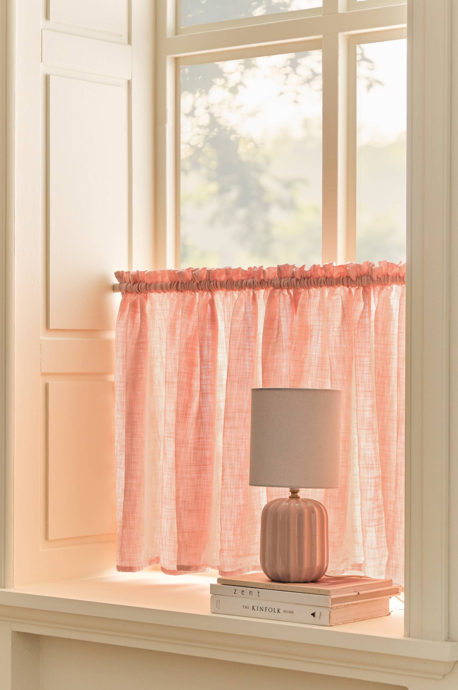 • Cafégardin i mjuk, tvättad bomull• Fåll i sidorna och nedtill• 3 cm kanal upptill• Perfekt som insynsskydd• Tips: En smalare gardinstång eller gardinspiral kan användas