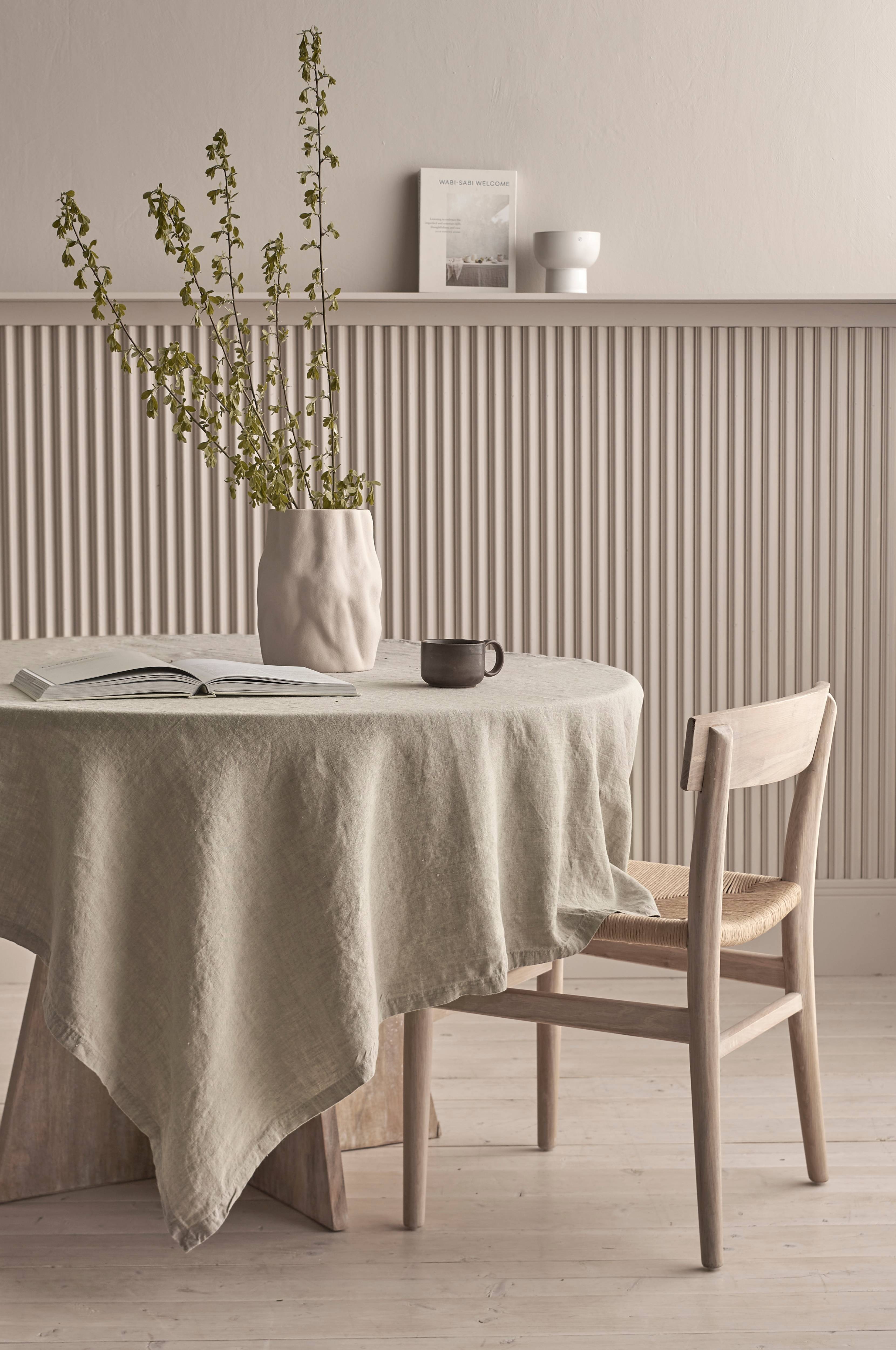 Duk i tvättad linnekvalitet. Stl 140x140 cm. Välj mellan att stryka slätt eller att torktumla i låg temperatur för en mjuk känsla och en tvättad look.