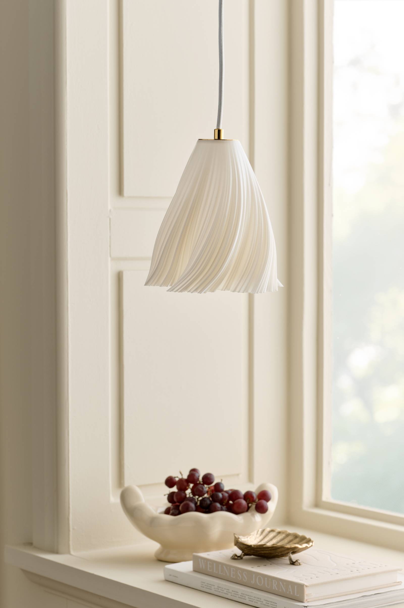 • Fönsterlampa med en 3D-printad lampskärm, tillverkad av biologiskt nedbrytbar plast• Textilsladd med strömbrytare• Väggkontakt• Ljuskälla ingår ej