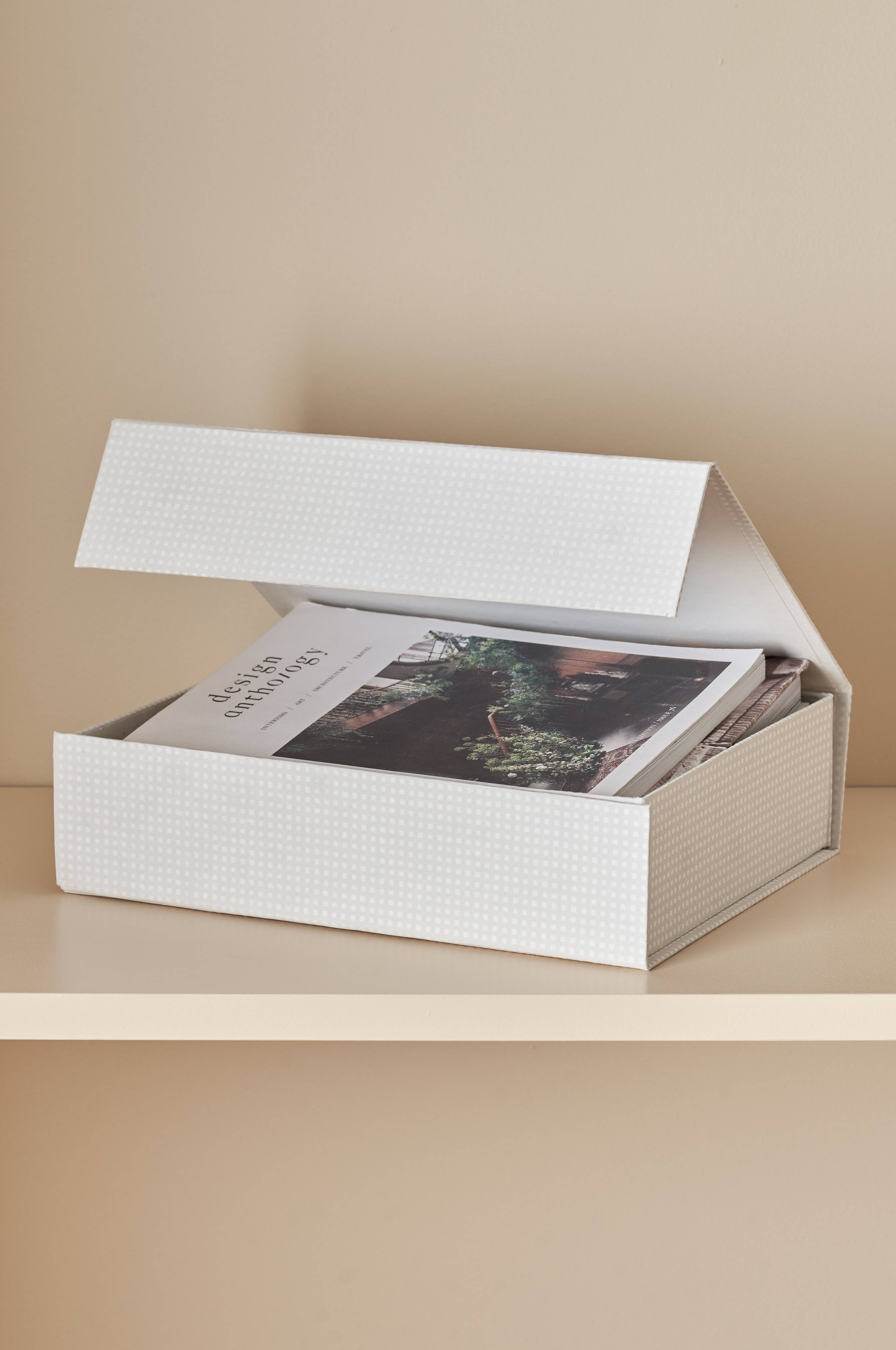 Förvaringsbox i återvunnet, handtillverkat papper/kartong. Lock med magnetstängning.
