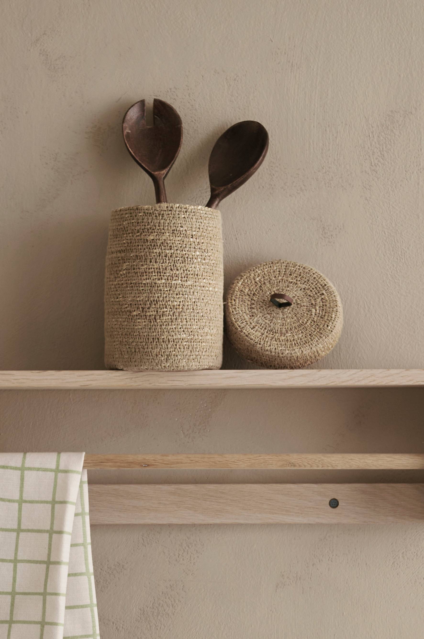 Förvaringskorg med lock. Tillverkad av sjögräs.