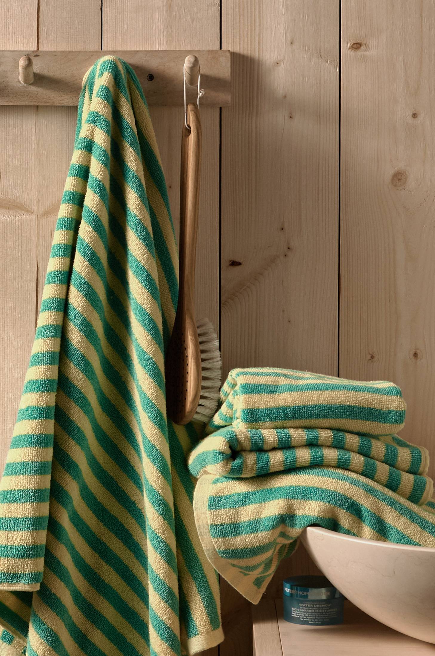Handdukar i mjuk och skön bomullsfrotté med garnfärgade ränder. Setet innehåller 2 handdukar 50x70 cm och 2 badhanddukar 70x140 cm.