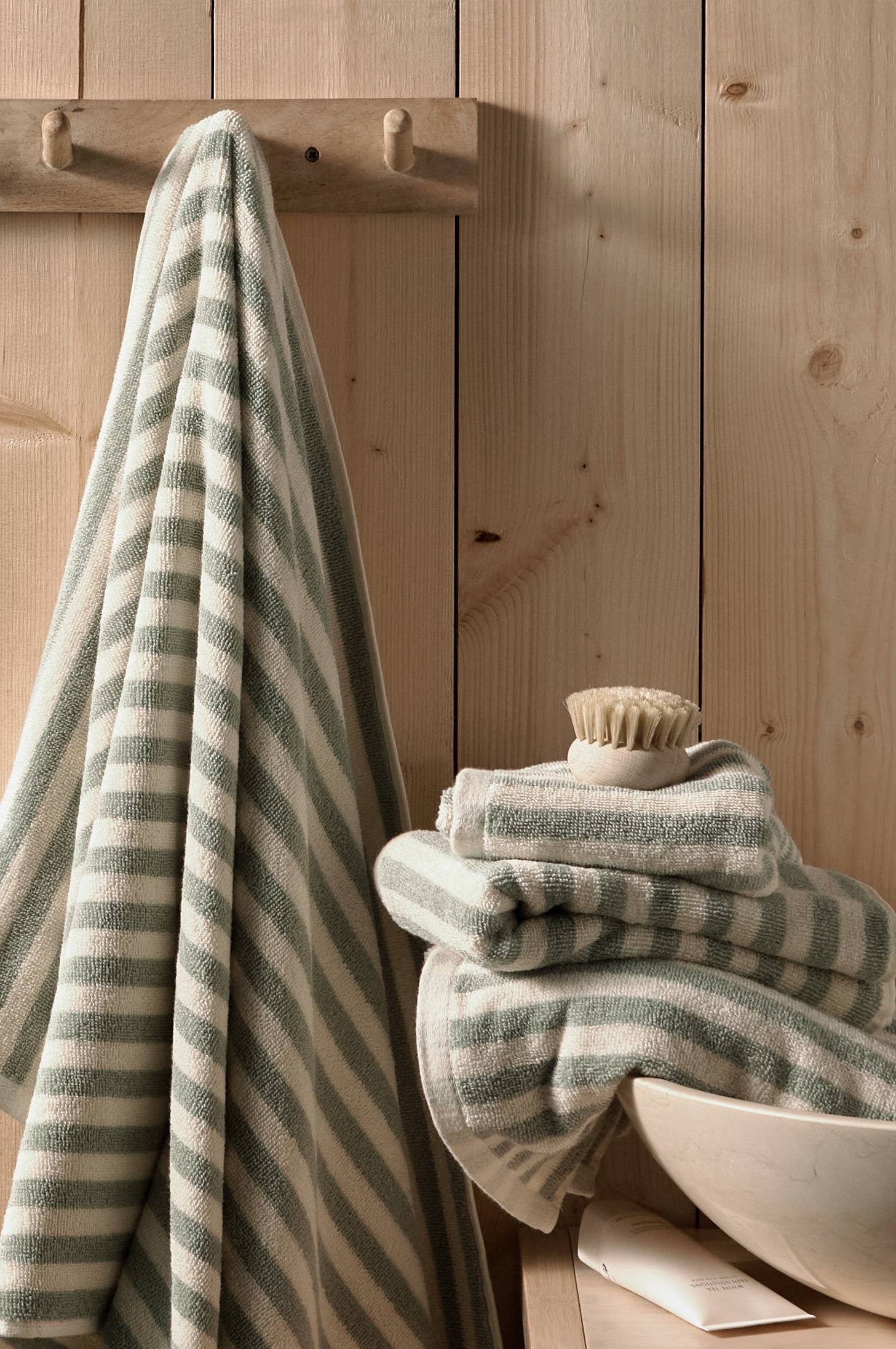 Handdukar i mjuk och skön bomullsfrotté med garnfärgade ränder. Setet innehåller 2 handdukar 50x70 cm och 2 badhanddukar 70x140 cm.