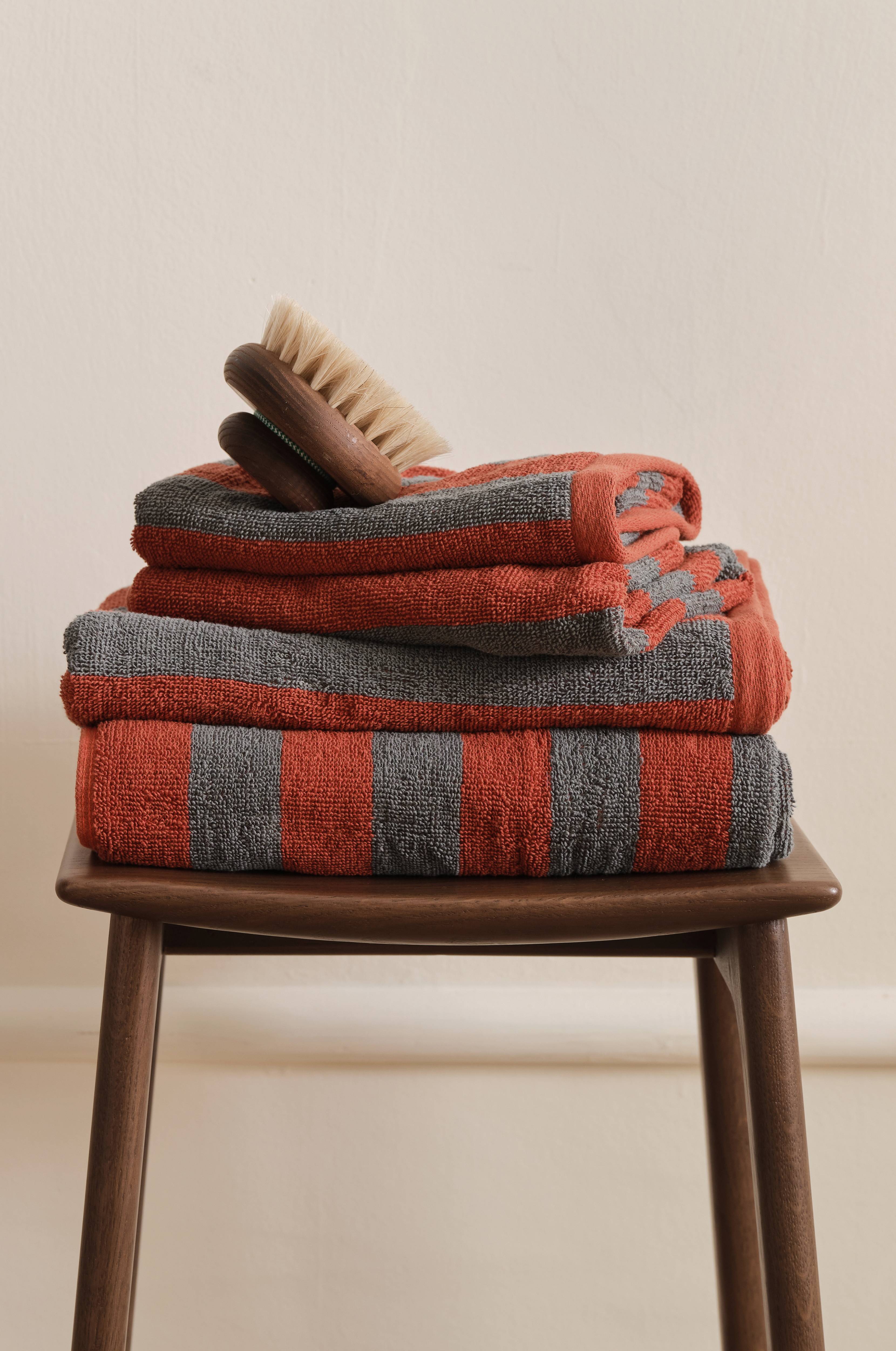 Handdukar i mjuk och skön bomullsfrotté med garnfärgade ränder. Setet innehåller 2 handdukar 50x70 cm och 2 badhanddukar 70x140 cm.