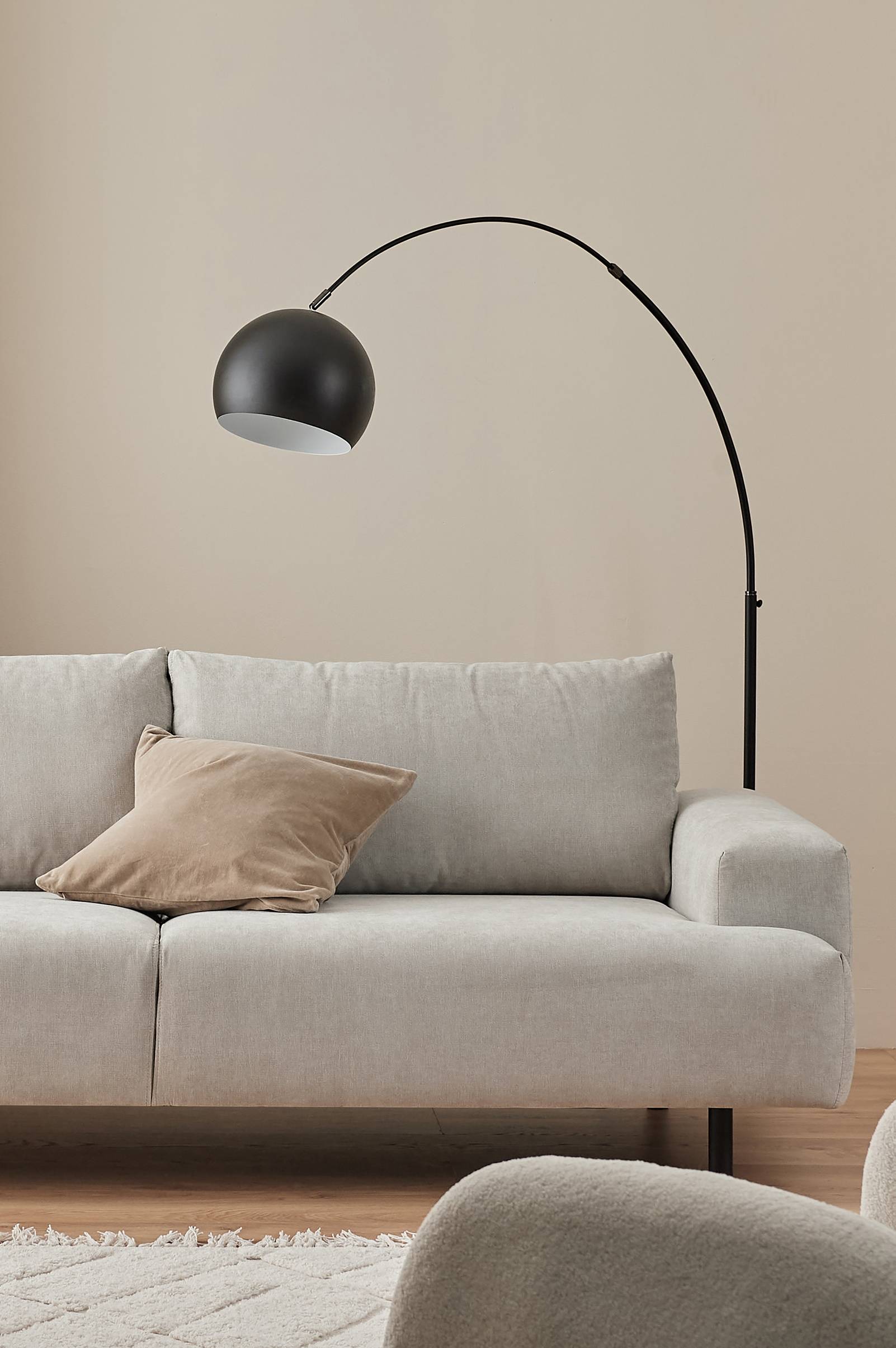 Golvlampa i metall med blank finish. Den övre armen kan justeras i önskad längd och skärmen kan justeras i höjdled. Lampans mått: Maxhöjd 160 cm och djup ca 65-115 cm. Skärmens mått: Diameter 27 cm, höjd 20,5 cm. Golvplattans mått: Diameter är 35 cm, höjd 4 cm. Svart textilsladd med fotströmbrytare och väggkontakt. Sladdlängd 250 cm. Sockel E27. Max 25W. Ljuskälla ingår ej.
