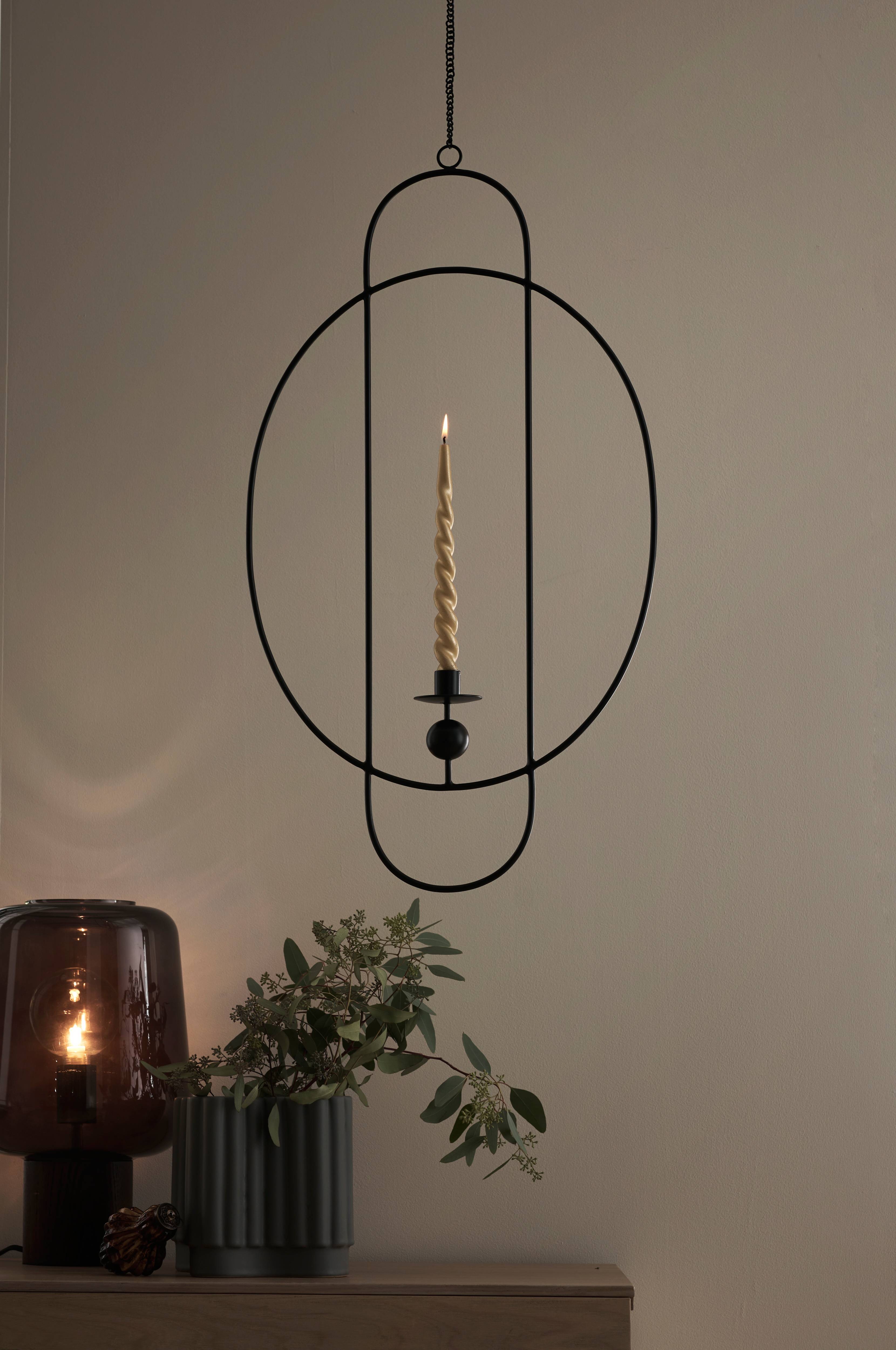 Hängande ljusstake av metall. För kronljus (max 25 cm). Mått på ljusstaken: Bredd 39,5 cm x höjd 72 cm. Kedja för upphängning, kedjans längd 50 cm. Total höjd ca 122 cm. Stearinljus rekommenderas. Endast för inomhusbruk.