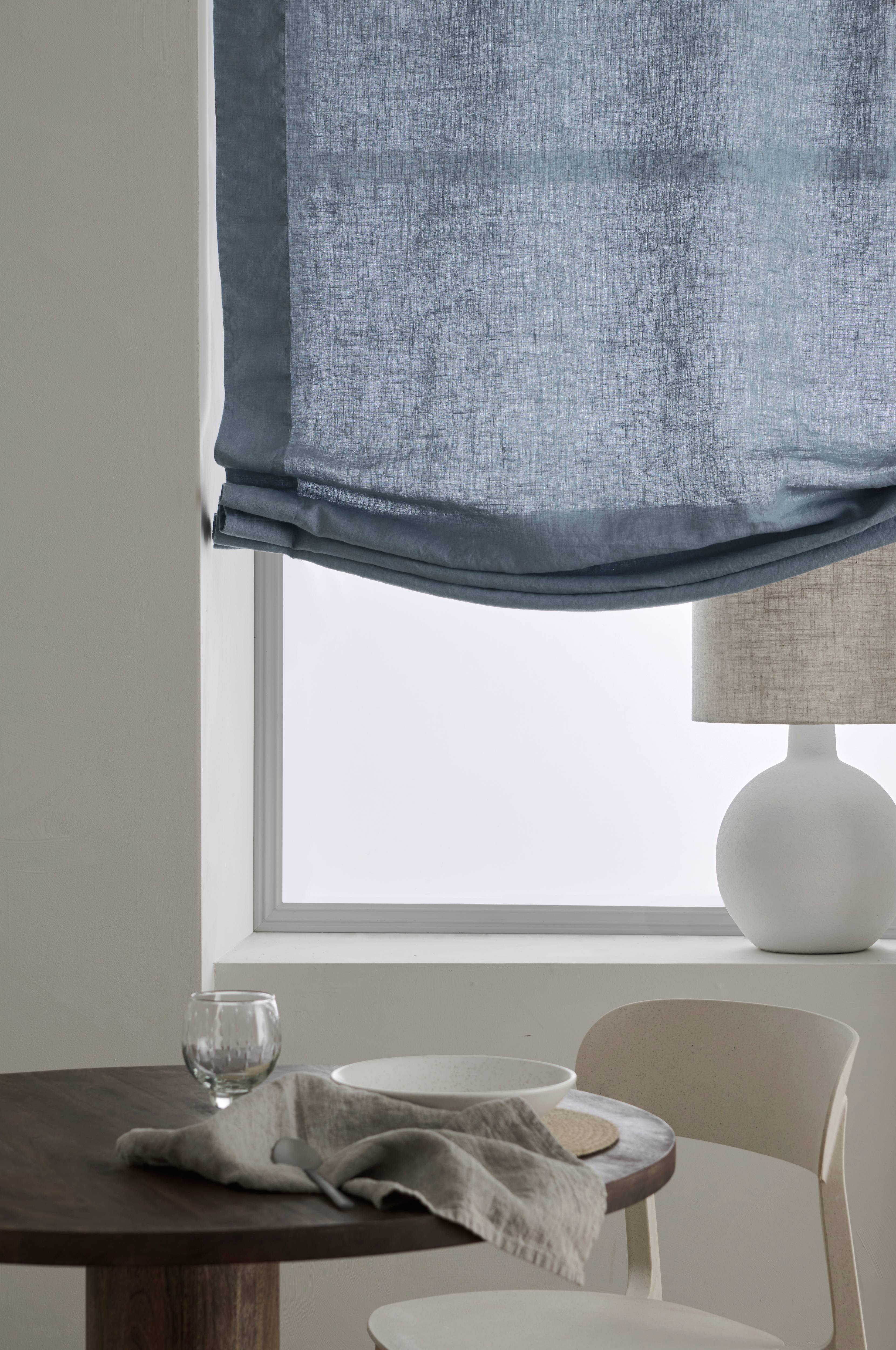Hissgardin i mjuktvättad linnekvalitet med 2 dragsnören på baksidan (3 dragsnören på stl 140 cm). Levereras färdigmonterad med träpinne upptill och nertill. Krokar för upphängning medföljer. Längd 160 cm. Finns i 4 bredder: 80, 100, 120 och 140 cm.