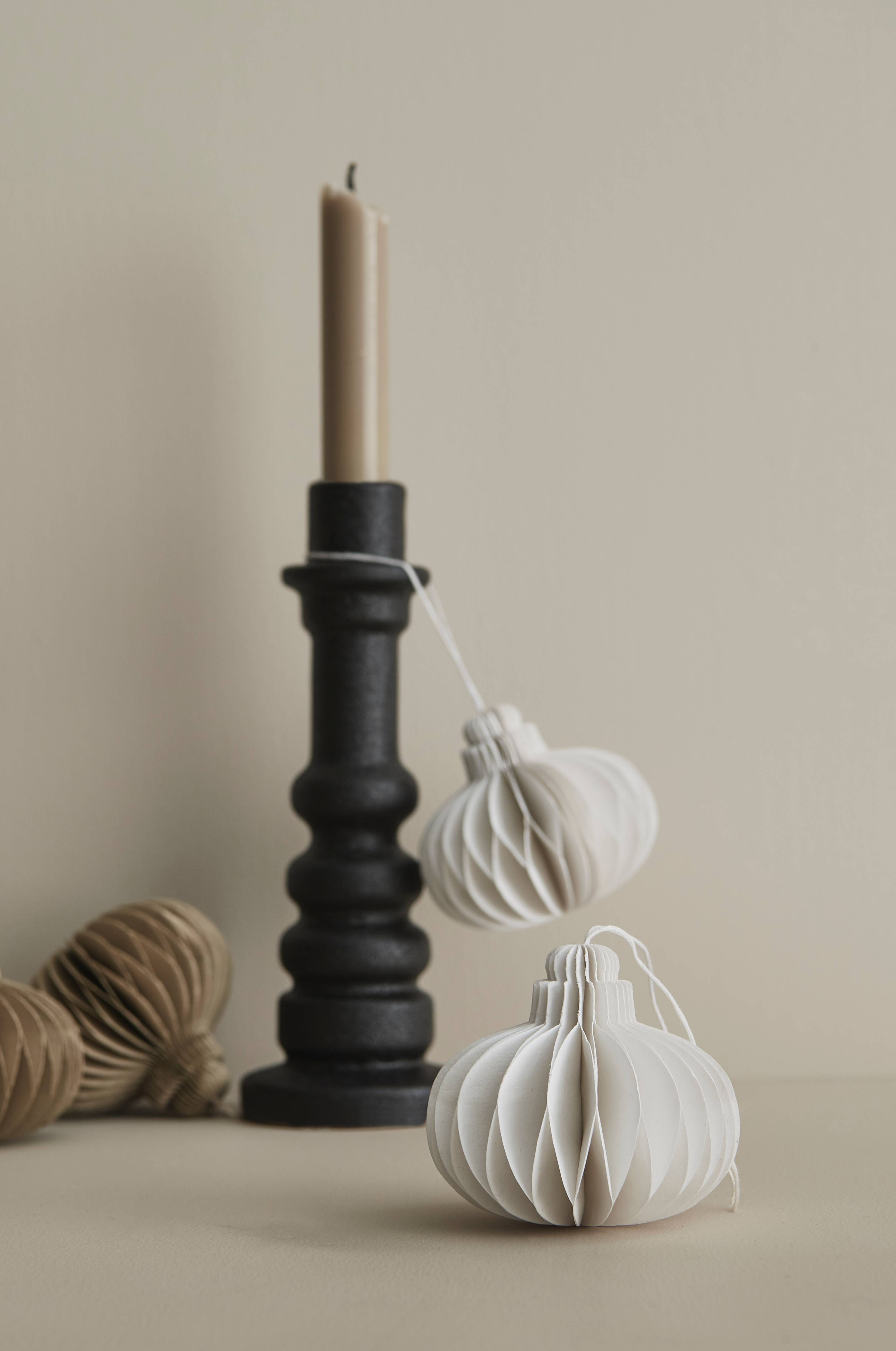 Dekorativa pappersbollar i 2-pack med upphäng, perfekta att hänga i julgranen. 7 cm textilsnöre. Försluts med magnet när de inte används. Ø 8 cm, höjd 7 cm.