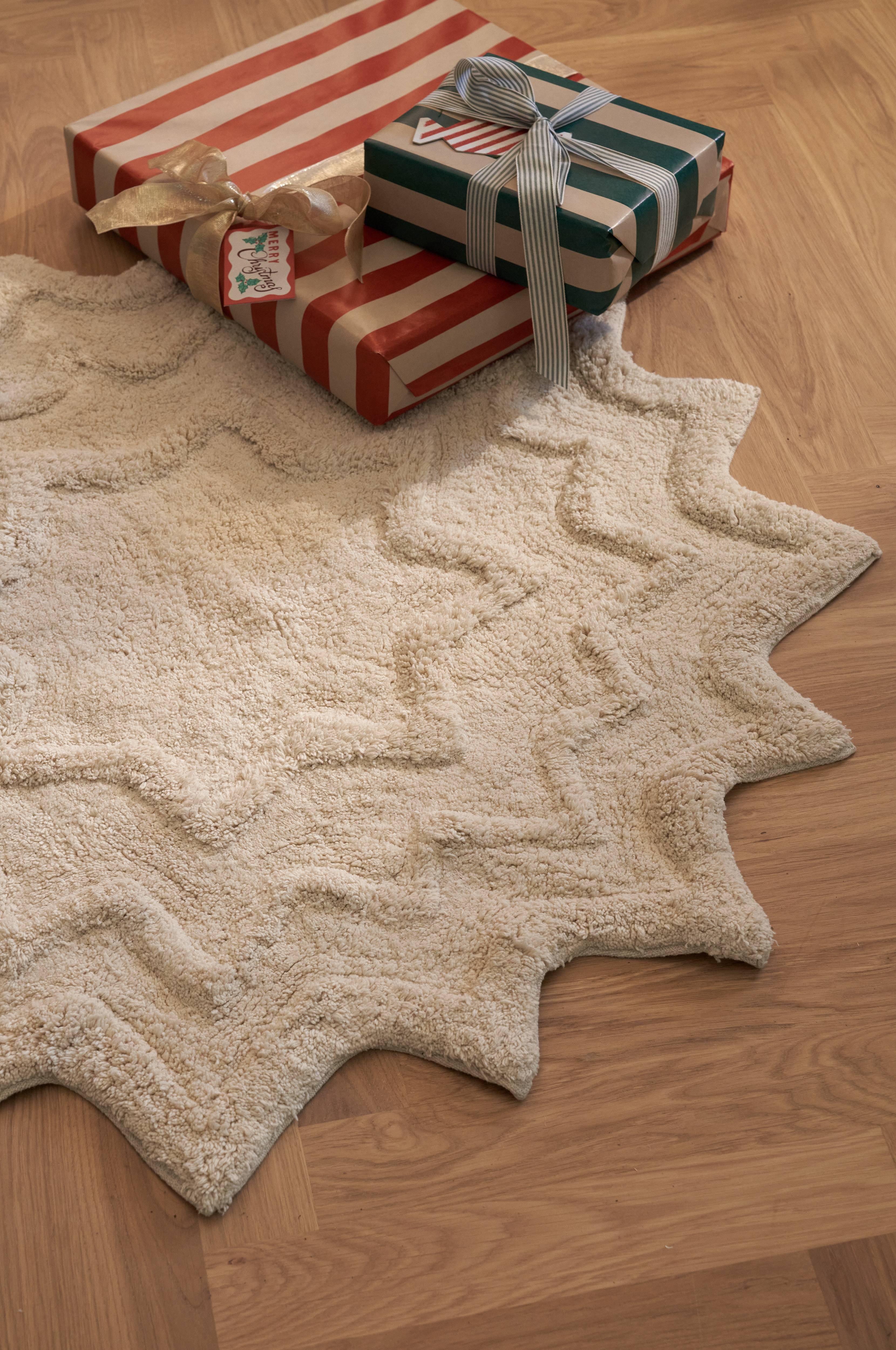 • Stjärnformad julgransmatta i bomull med tuftat mönster
