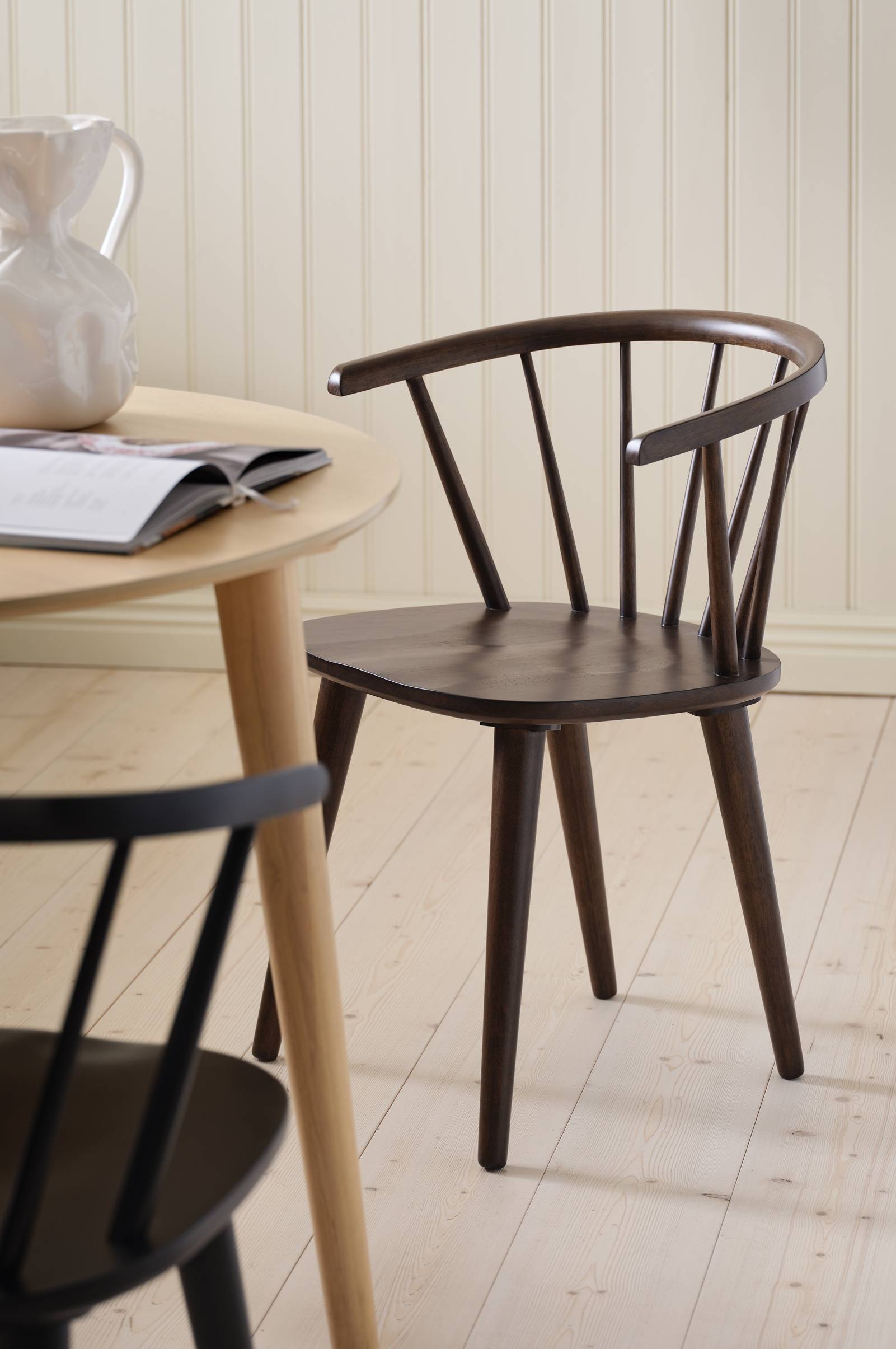 Stabil stol, bekväm. Väldigt dåligt undermåligt och hafsigt målad, ojämnt med ljusa klart synliga fläckar med knappt någon brun färg i.