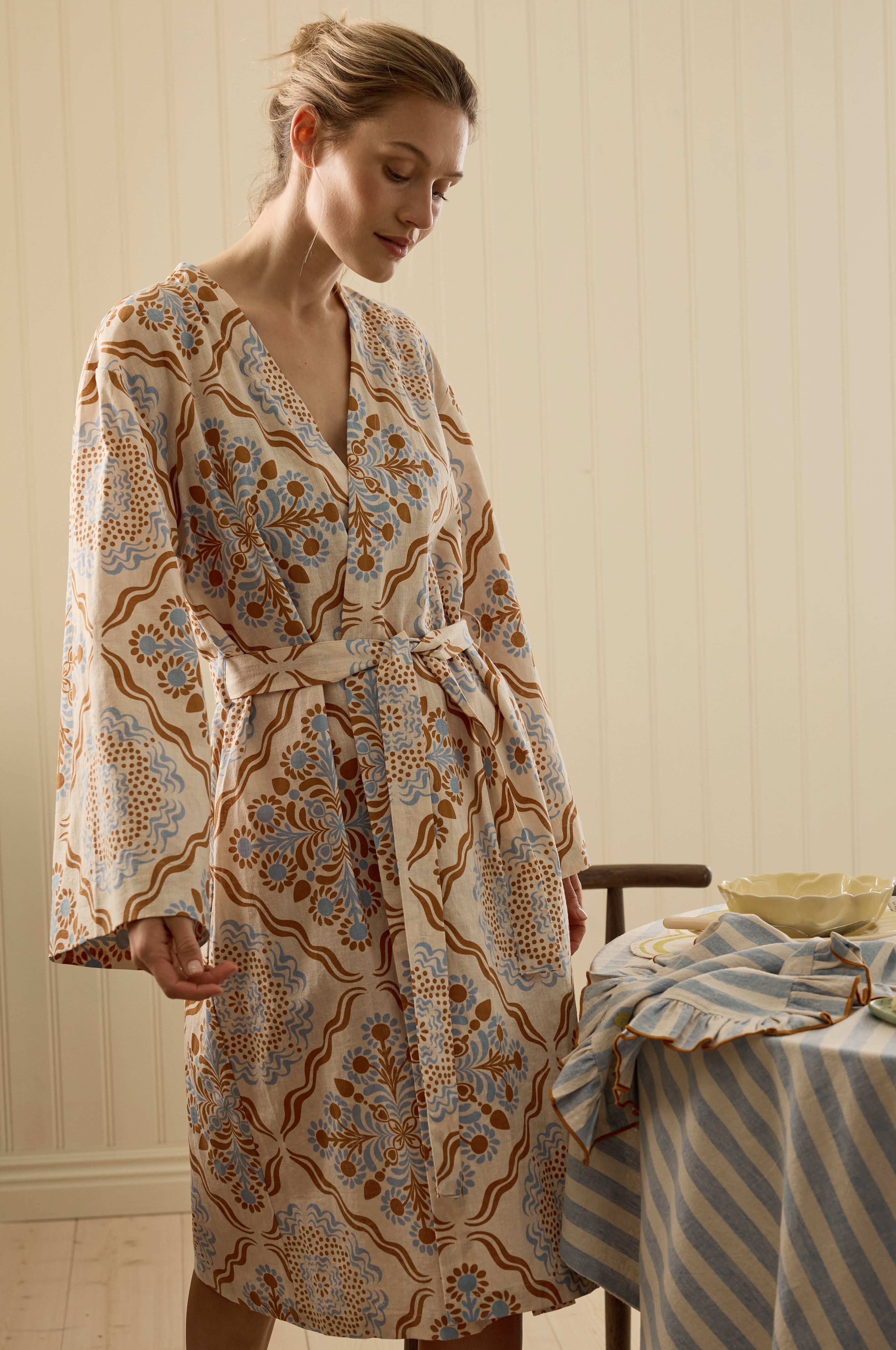 • Kimono i bomull och lin med mjuk, tvättad finish• Levande yta med lätt linnestruktur• Tryckt mönster• Lång modell