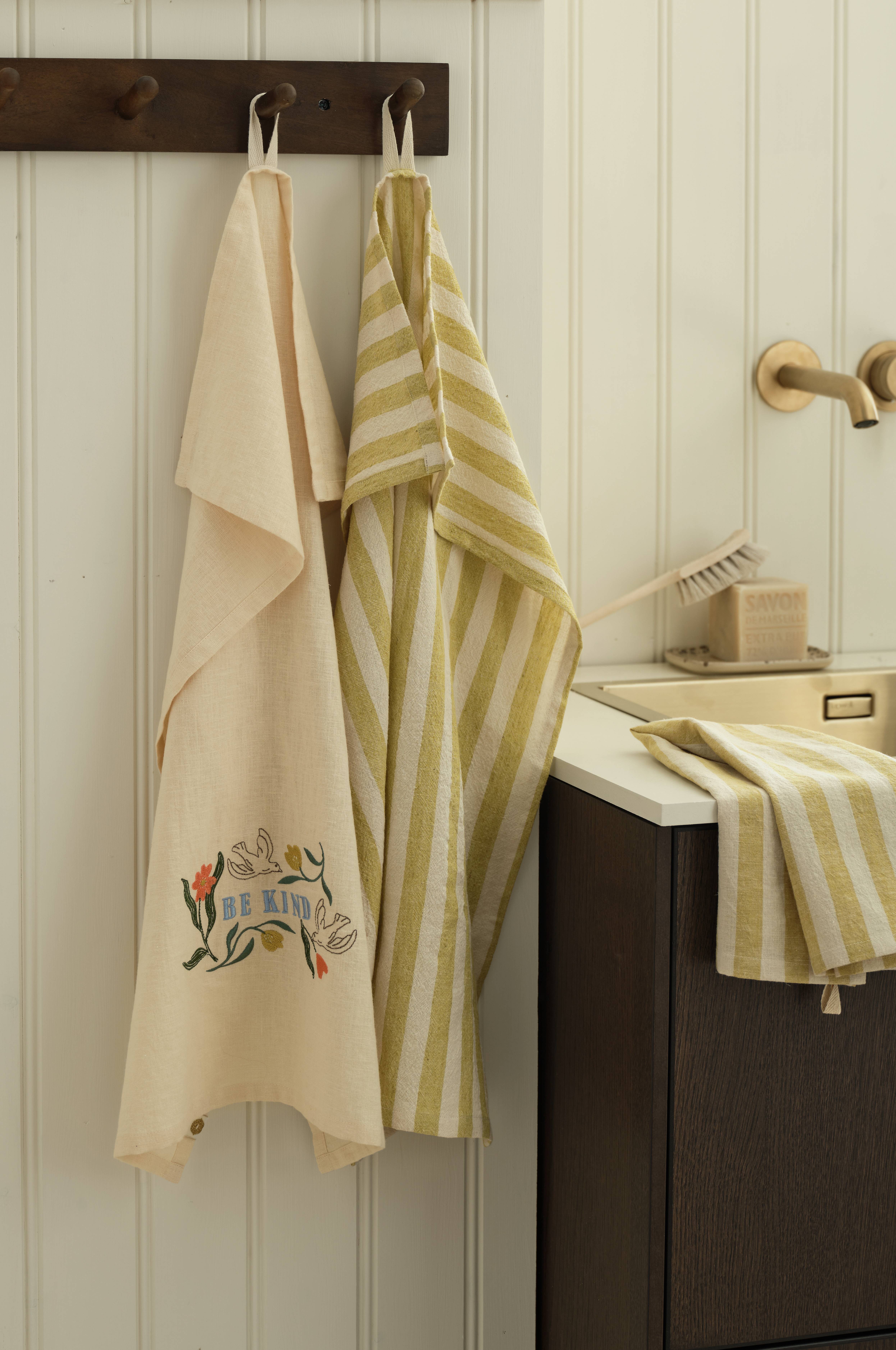 • Två kökshanddukar i bomull och lin med mjuk, tvättad finish