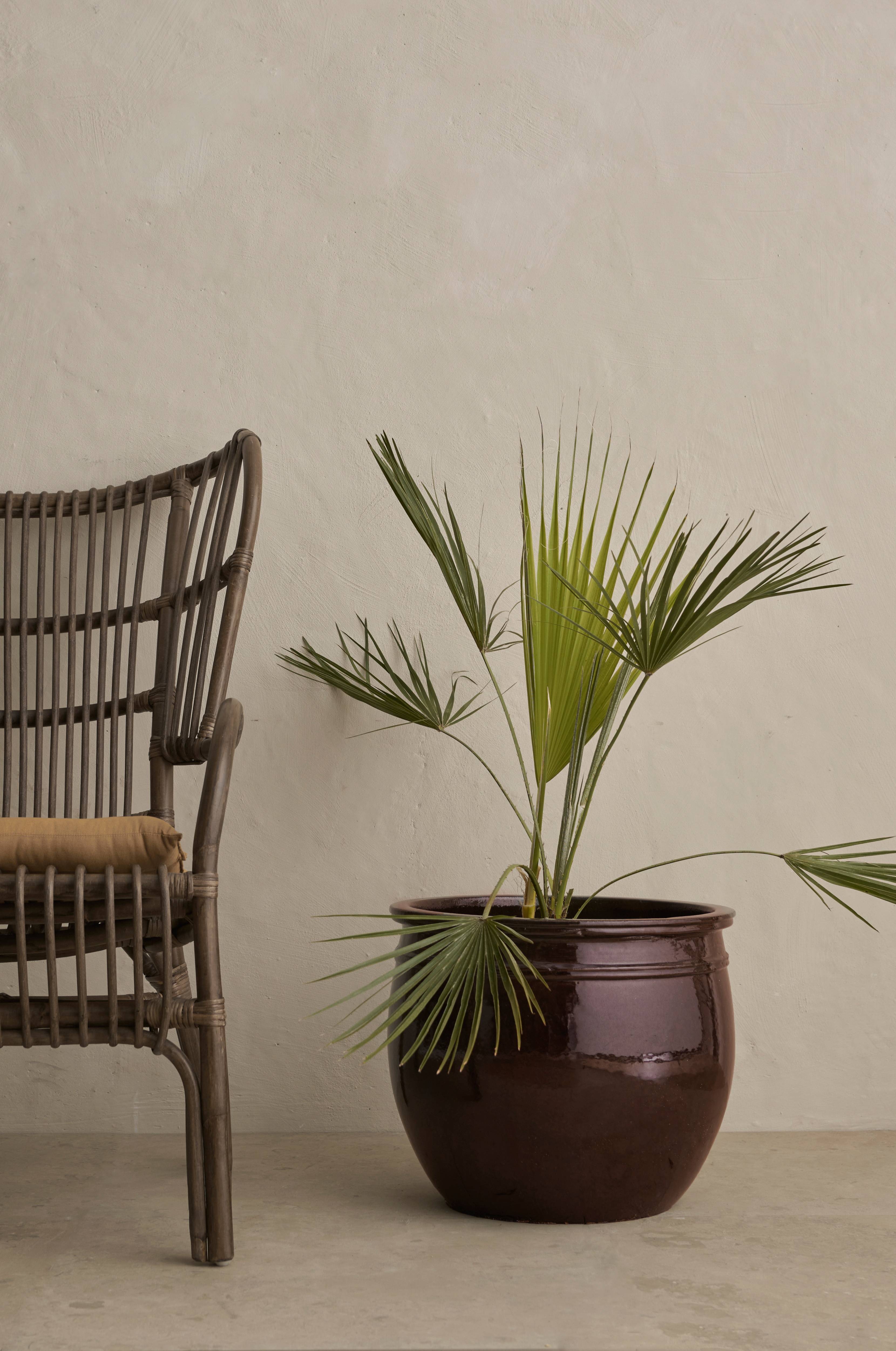 Robust kruka i glaserad keramik. Krukan är tillverkad för utomhusbruk och kan stå ute i minusgrader. Höjd 36,5 cm. Diameter upptill 43 cm. Innerdiameter 37 cm.