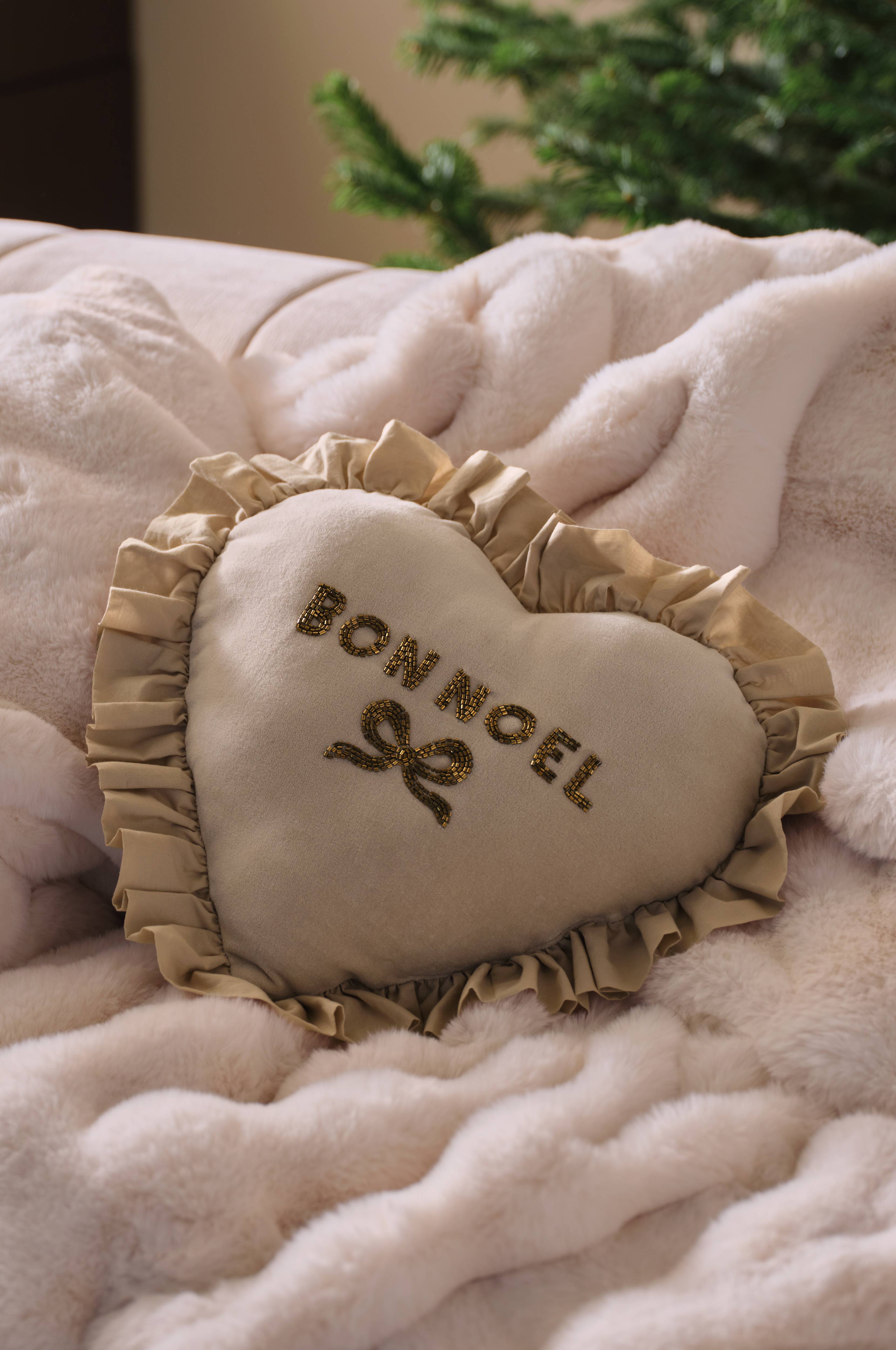 • Hjärtformad kudde i sammet med metallisk pärlbrodyr