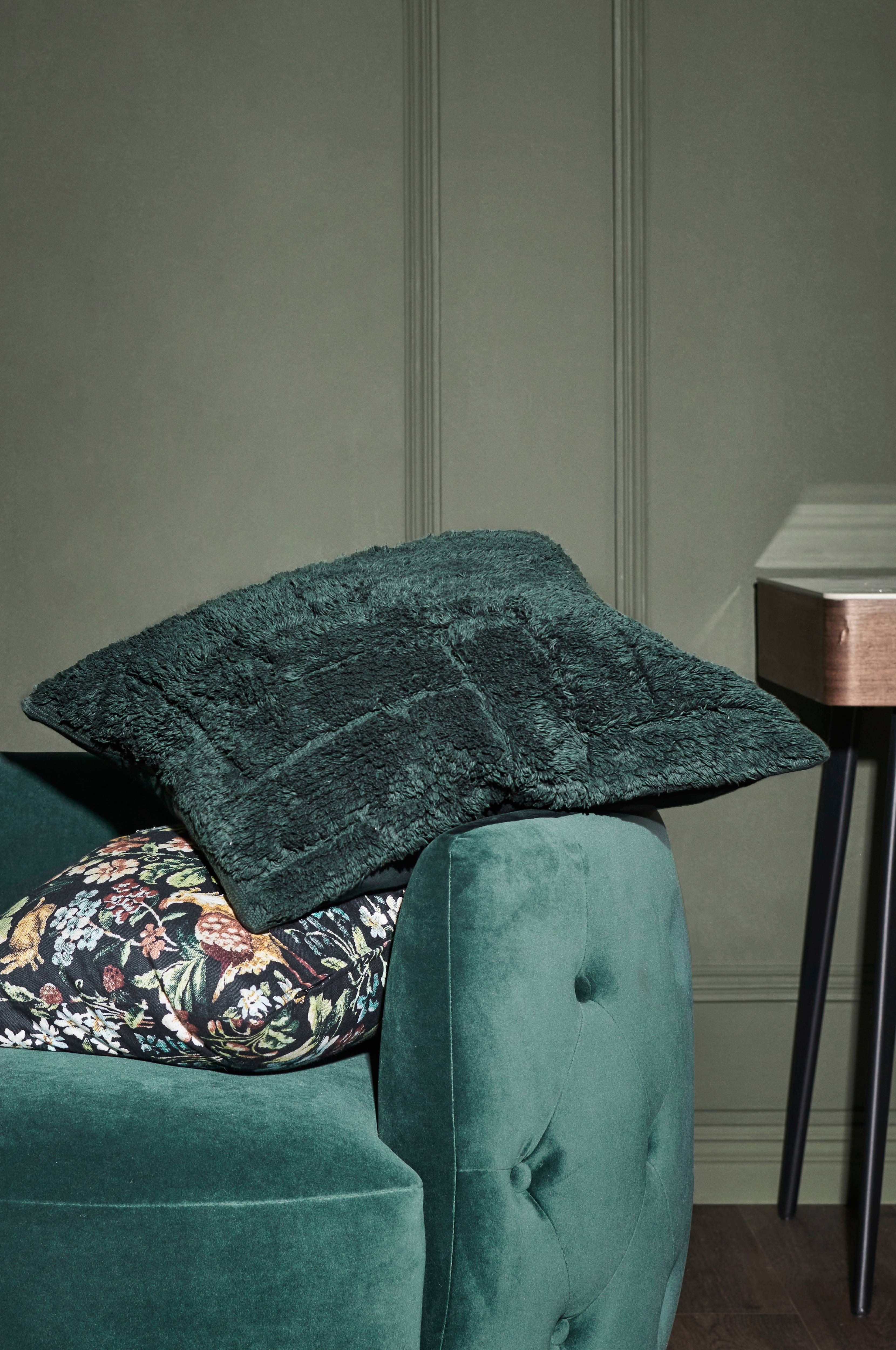 Kuddfodral med tuftad framsida och slät baksida i lite kraftigare halvpanama. Metalldragkedja i botten.