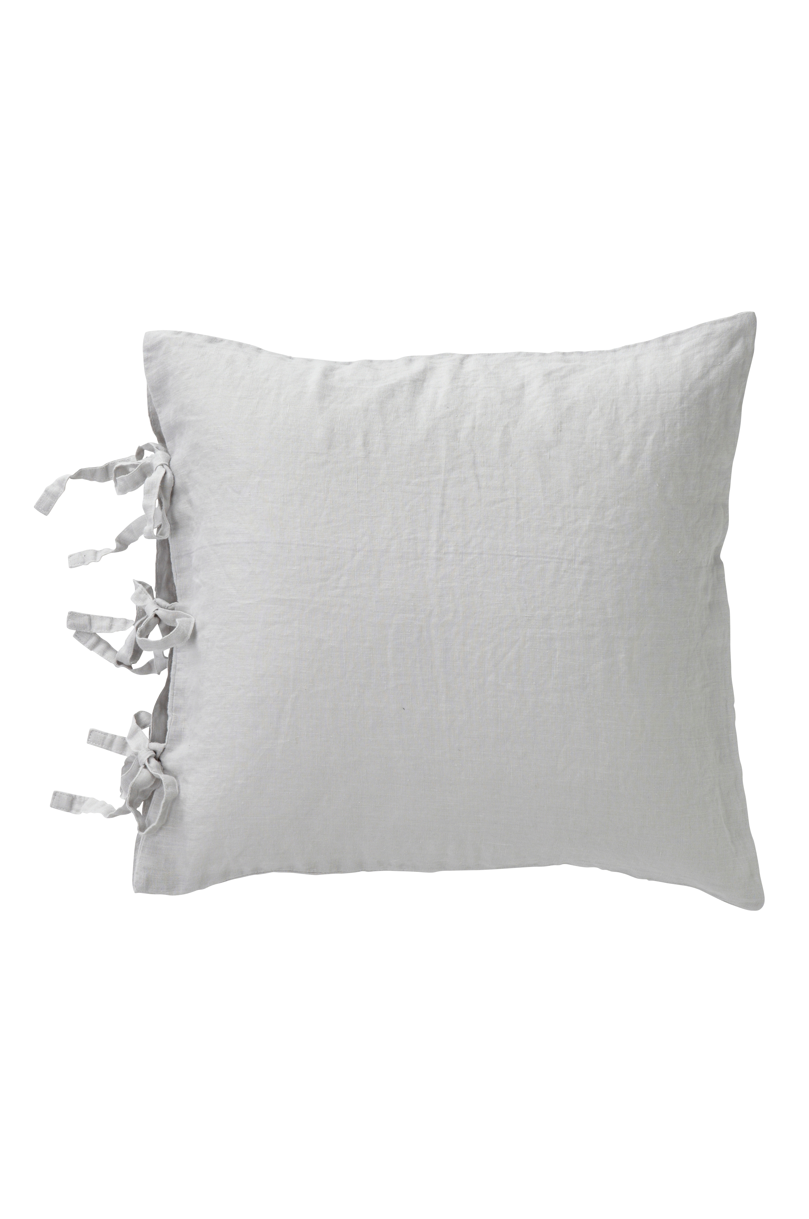 Kuddfodral i mjuk tvättad linnekvalitet med vintagelook. Av franskt lin. Tre par knytband i ena kanten. Stl 50x50 cm.