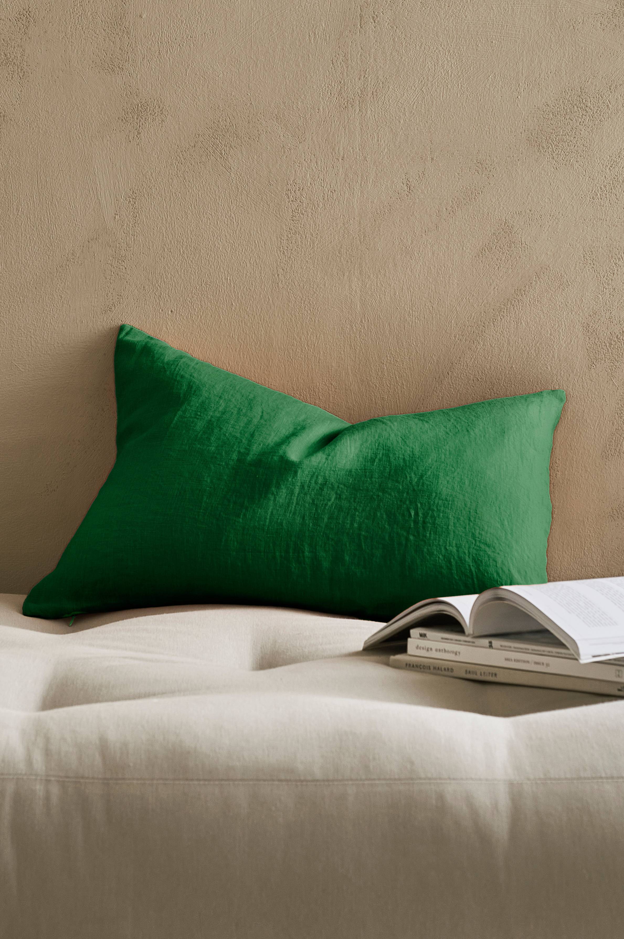 Kuddfodral i mjuk, tvättad linnekvalitet av franskt lin. Dragkedja i botten. Stl 40x60 cm.