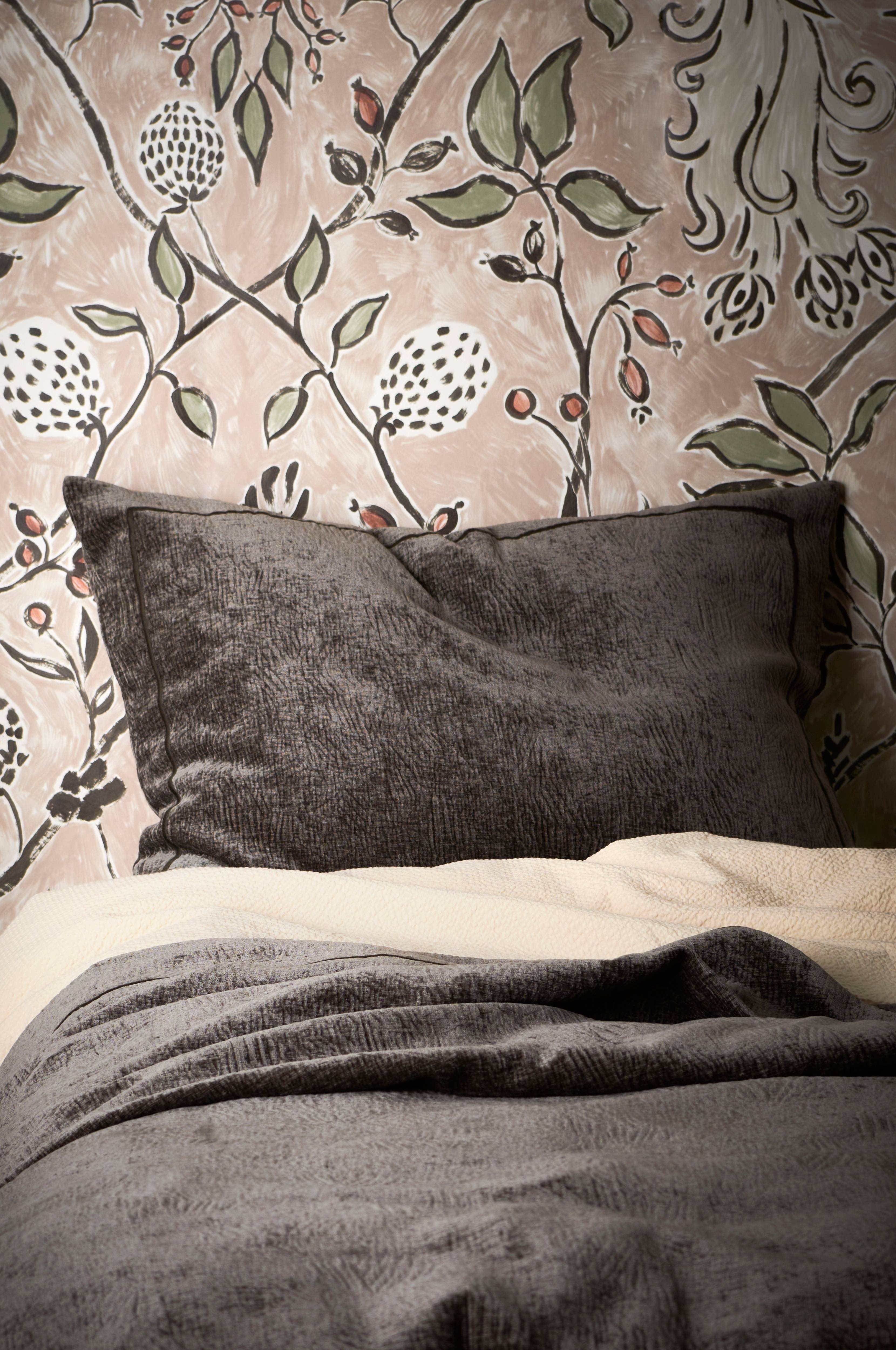 Kuddfodral i krinklad sammet med tvättad finish. Dekorativ, sydd kant runt om. Dragkedja. Stl 60x80 cm.