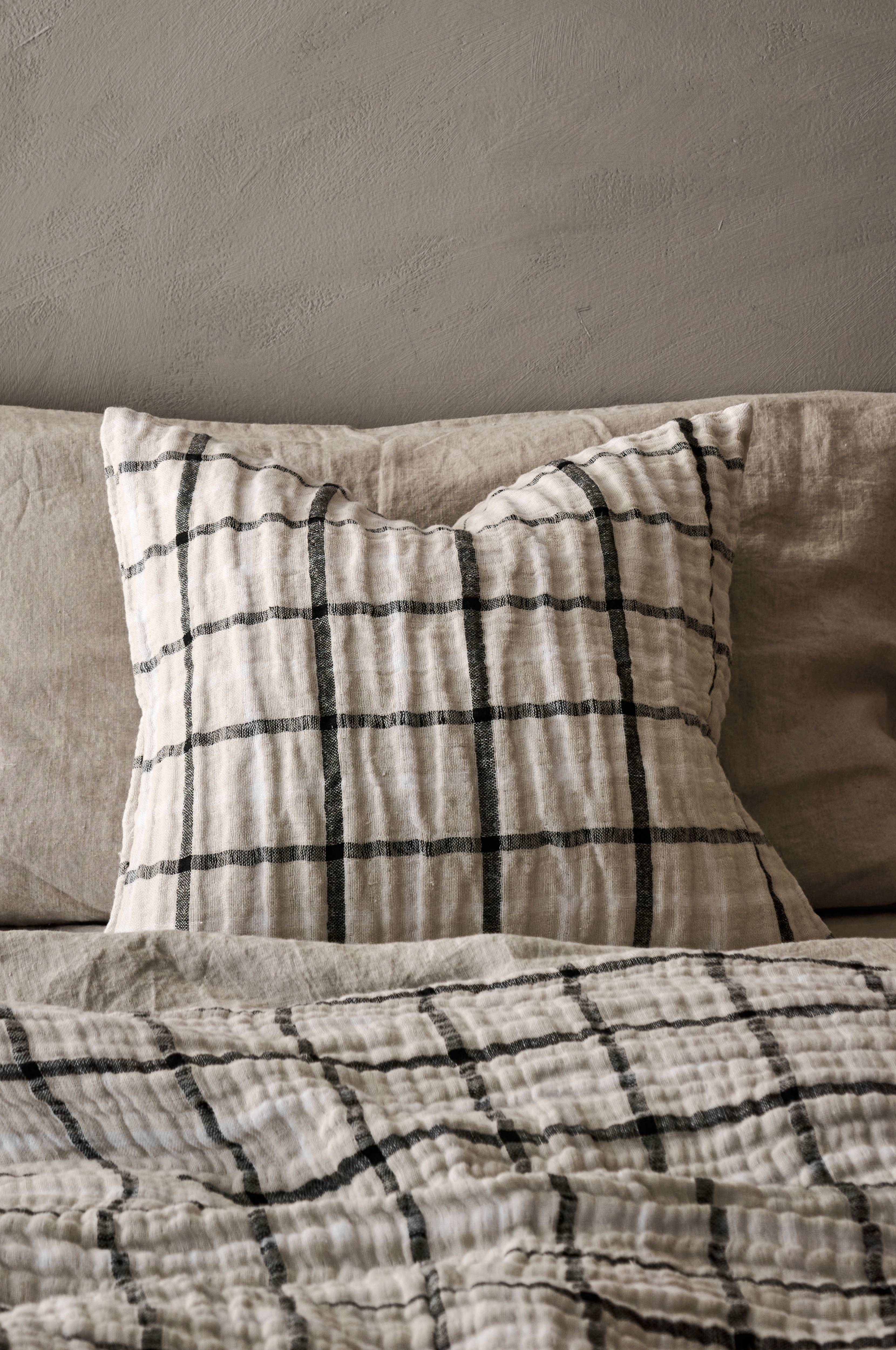 Kuddfodral av garnfärgad och tvättad muslin i 4 lager. Muslin är ett supermjukt, luftigt och lätt strukturerat tyg med den välkända rynkiga effekten. Dragkedja. Stl 50x50 cm.