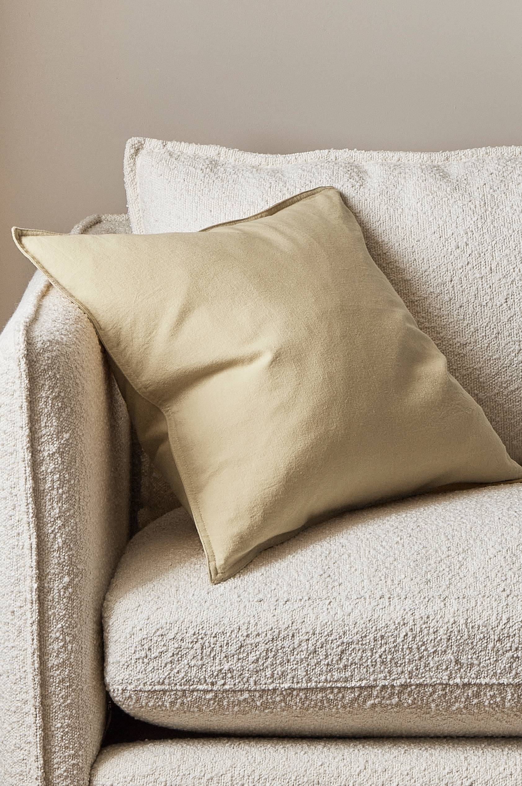 Ej gröngul i färgen utan enbart gul. Precis som jag hoppades på! Passar jättebra i min ljusgråa soffa.