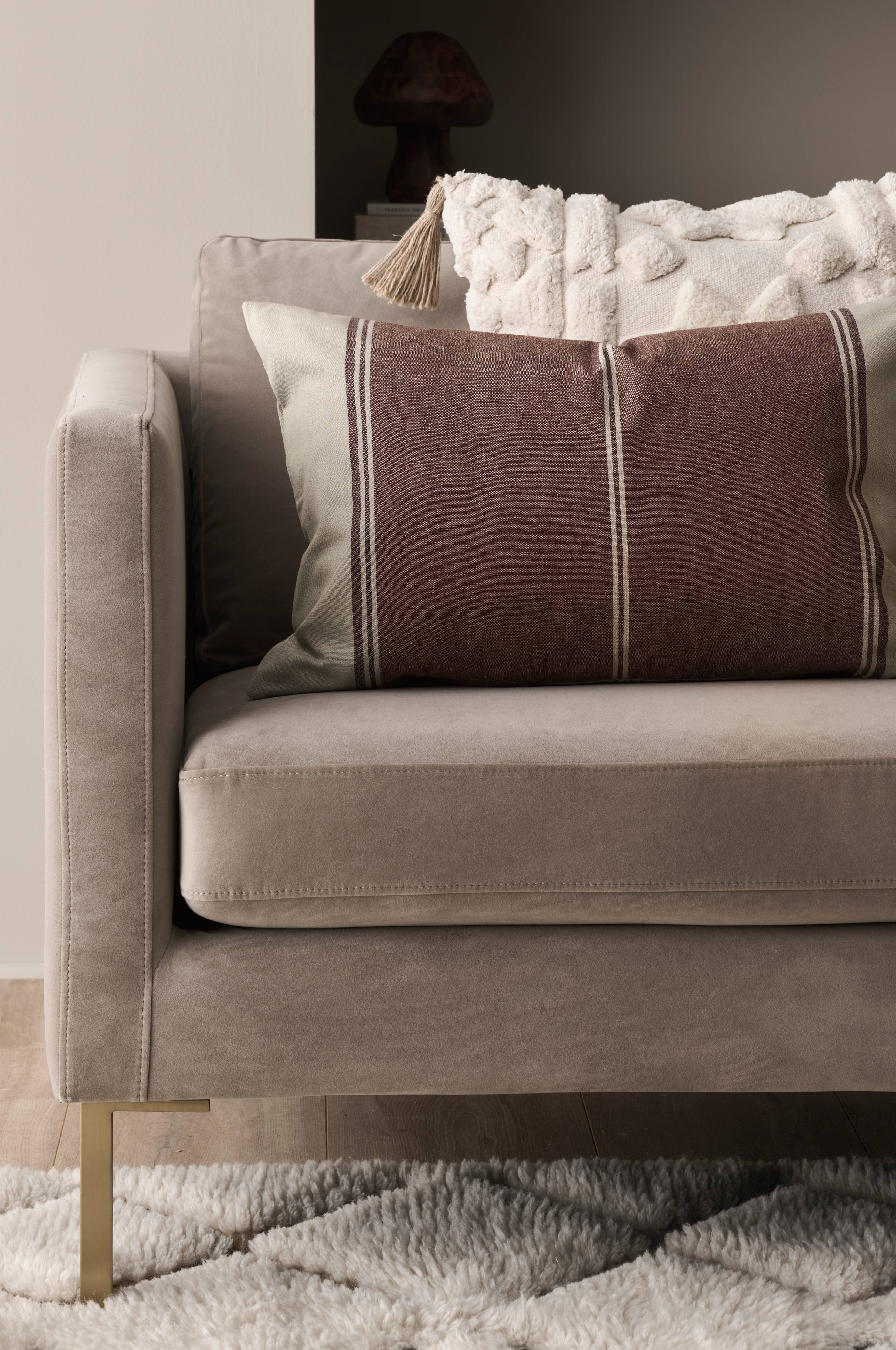 Kuddfodral i bomull med garnfärgad rand på båda sidorna. Dragkedja i botten.