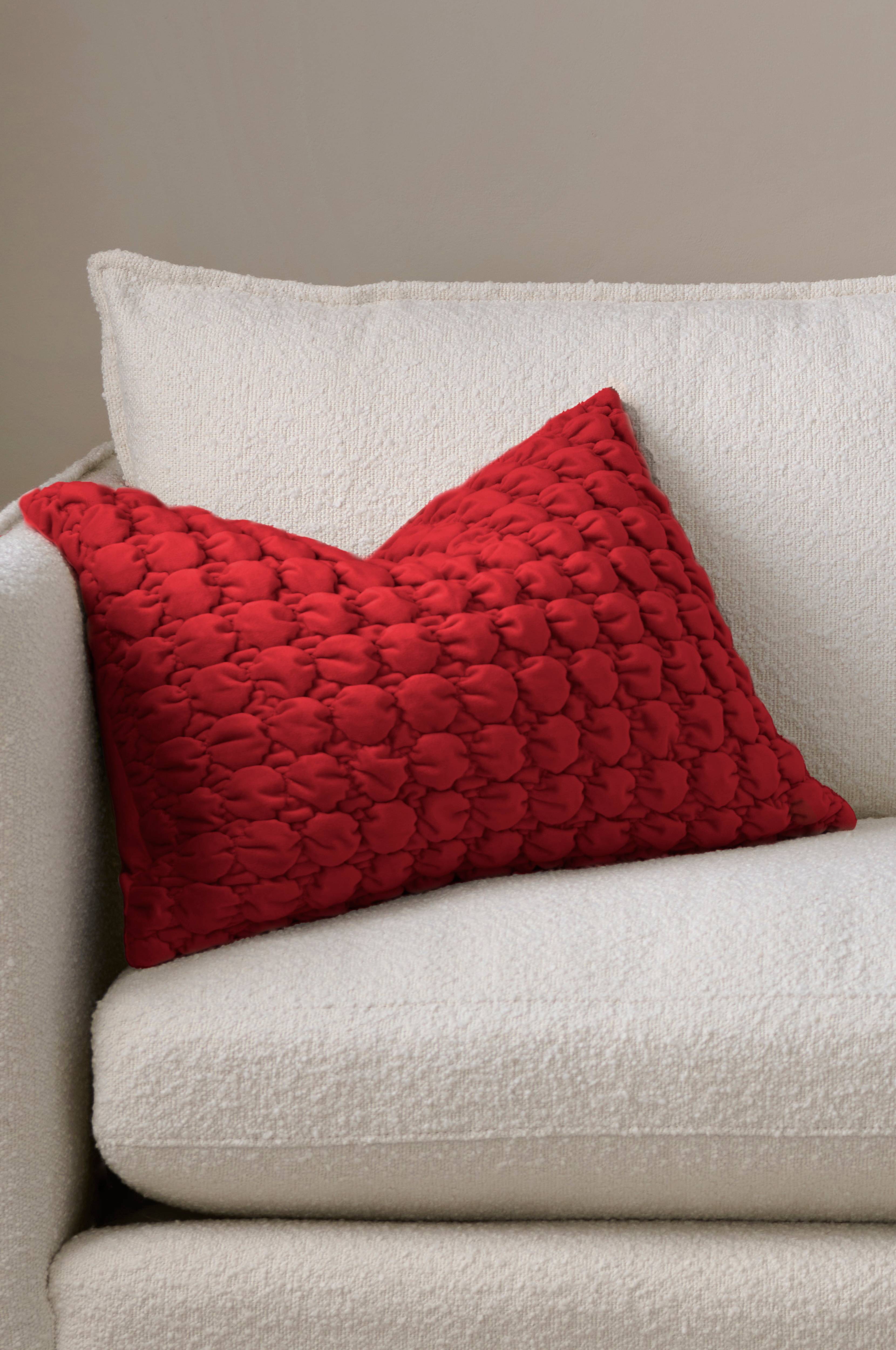 Kuddfodral av sammet med fin lyster och ett sytt, dekorativt mönster på framsidan. Slät baksida. Av återvunnen polyester. Dragkedja i botten.