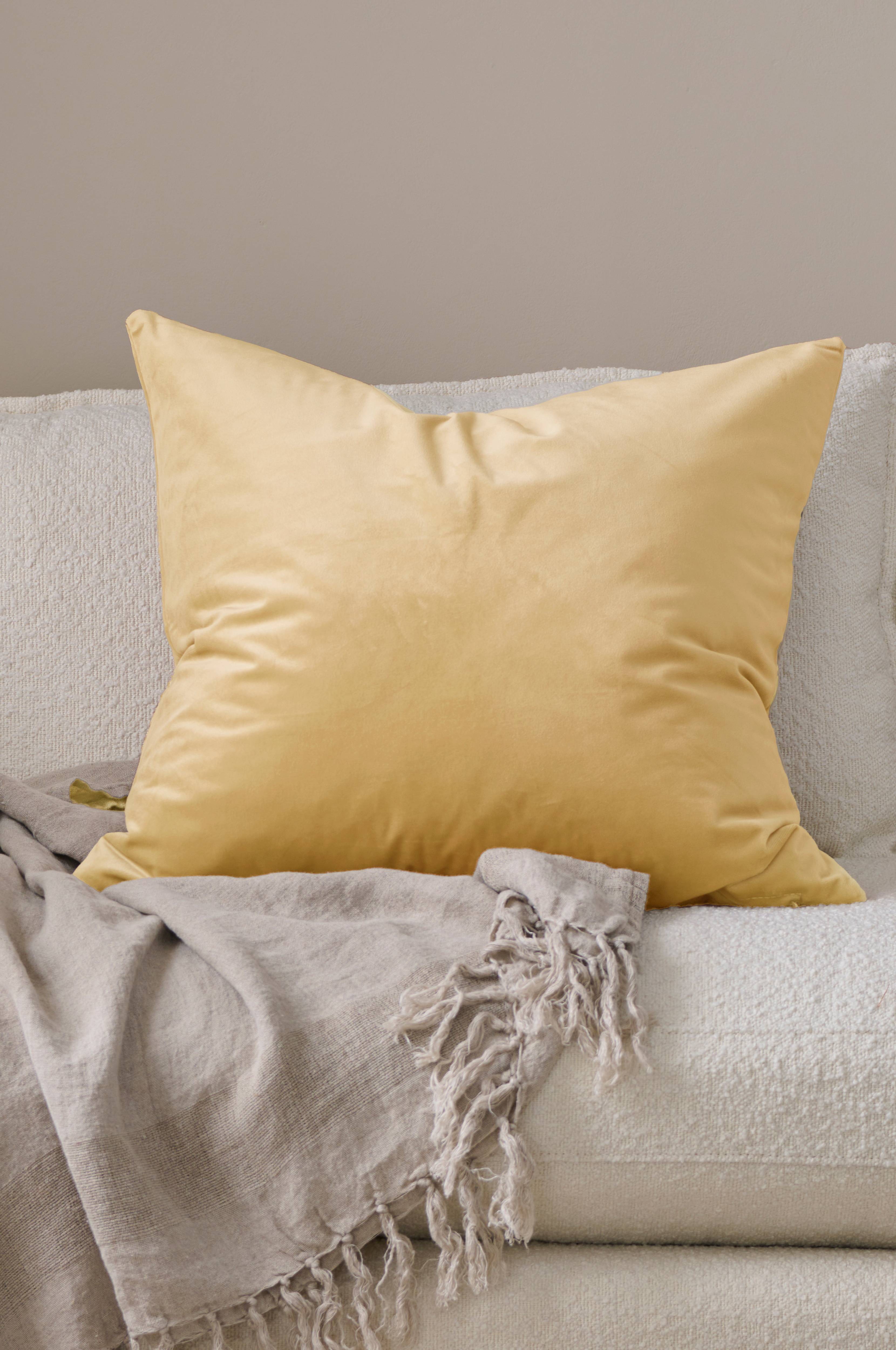 Kuddfodral av sammet med fin lyster. Av återvunnen polyester. Dragkedja i botten.