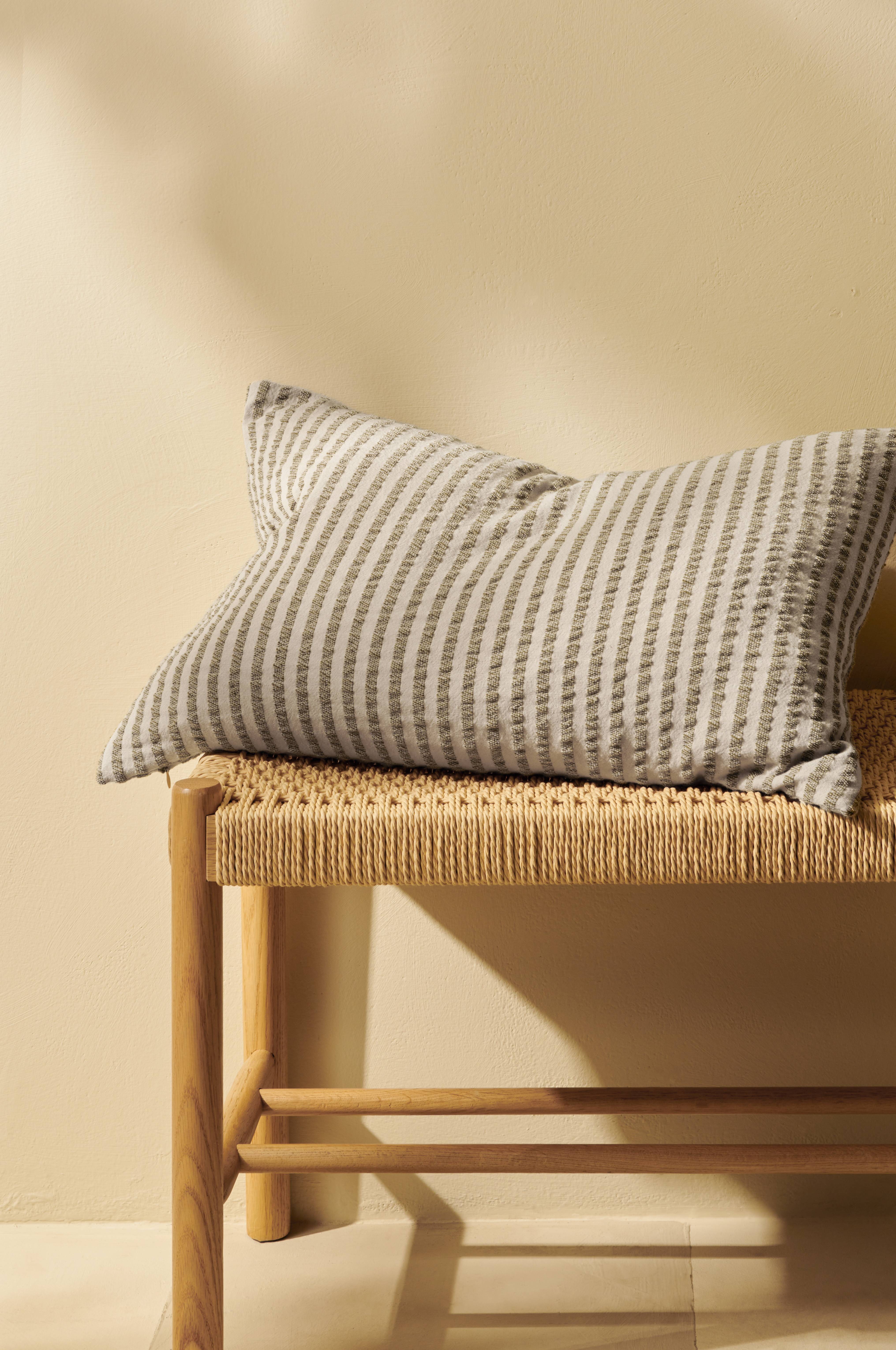 Kuddfodral i ekologisk bomull. Garnfärgade ränder med melangeeffekt och lätt struktur. Dragkedja i botten.