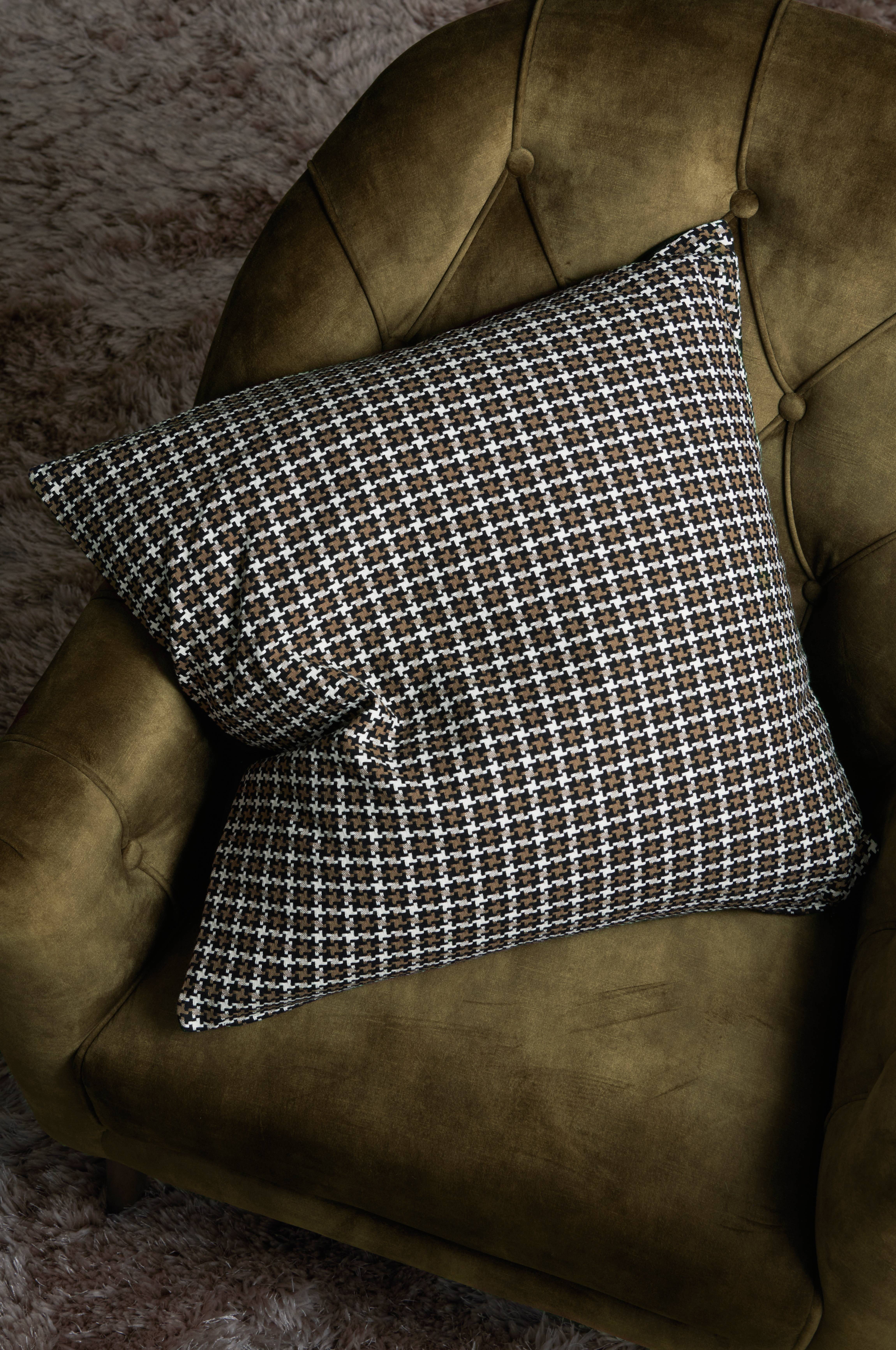Kuddfodral i bomull med jacquardvävt mönster på framsidan. Enfärgad baksida.
