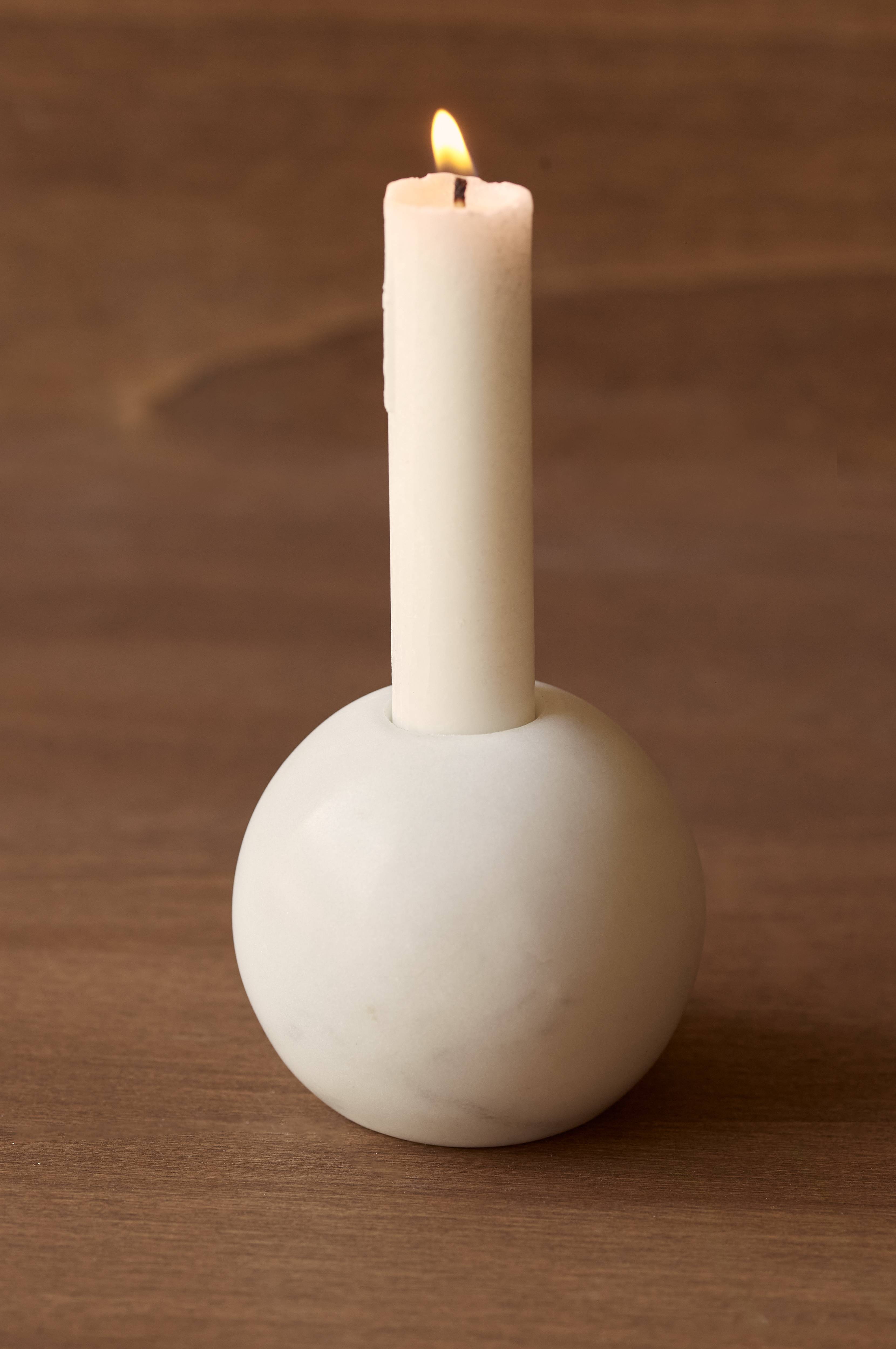 • En kombinerad, vändbar ljushållare och värmeljuslykta• Den ena sidan har en öppning för värmeljus, den andra sidan har en 2 cm öppning för ett långt ljus• Gjord av marmor