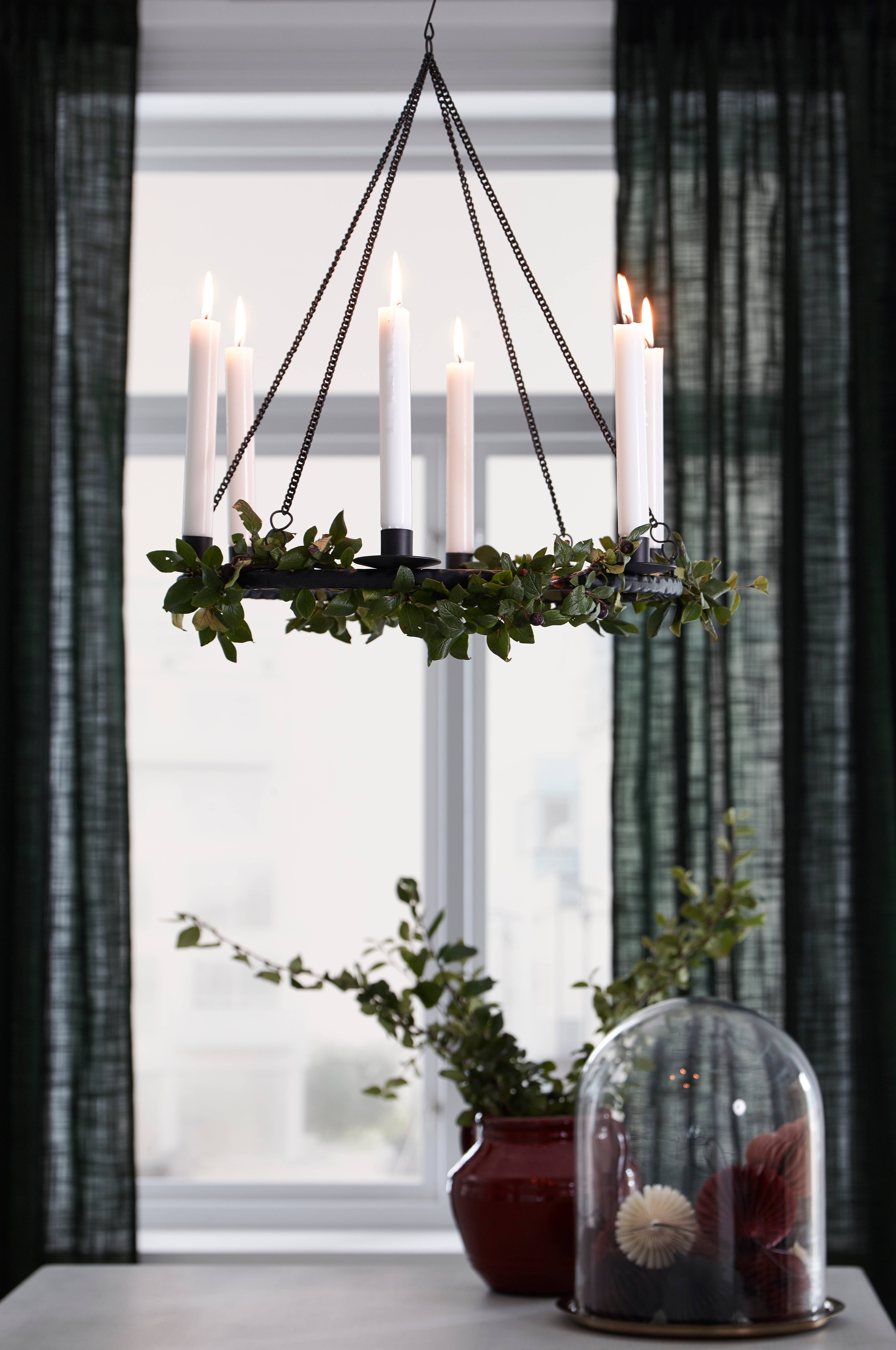 Ljuskronan hänger fint i taket. Det är stilren och går att dekorera efter säsong. Jag har min i uterummet och har en ljusslinga med timer på batteri lindad runt den så det lyser fi…