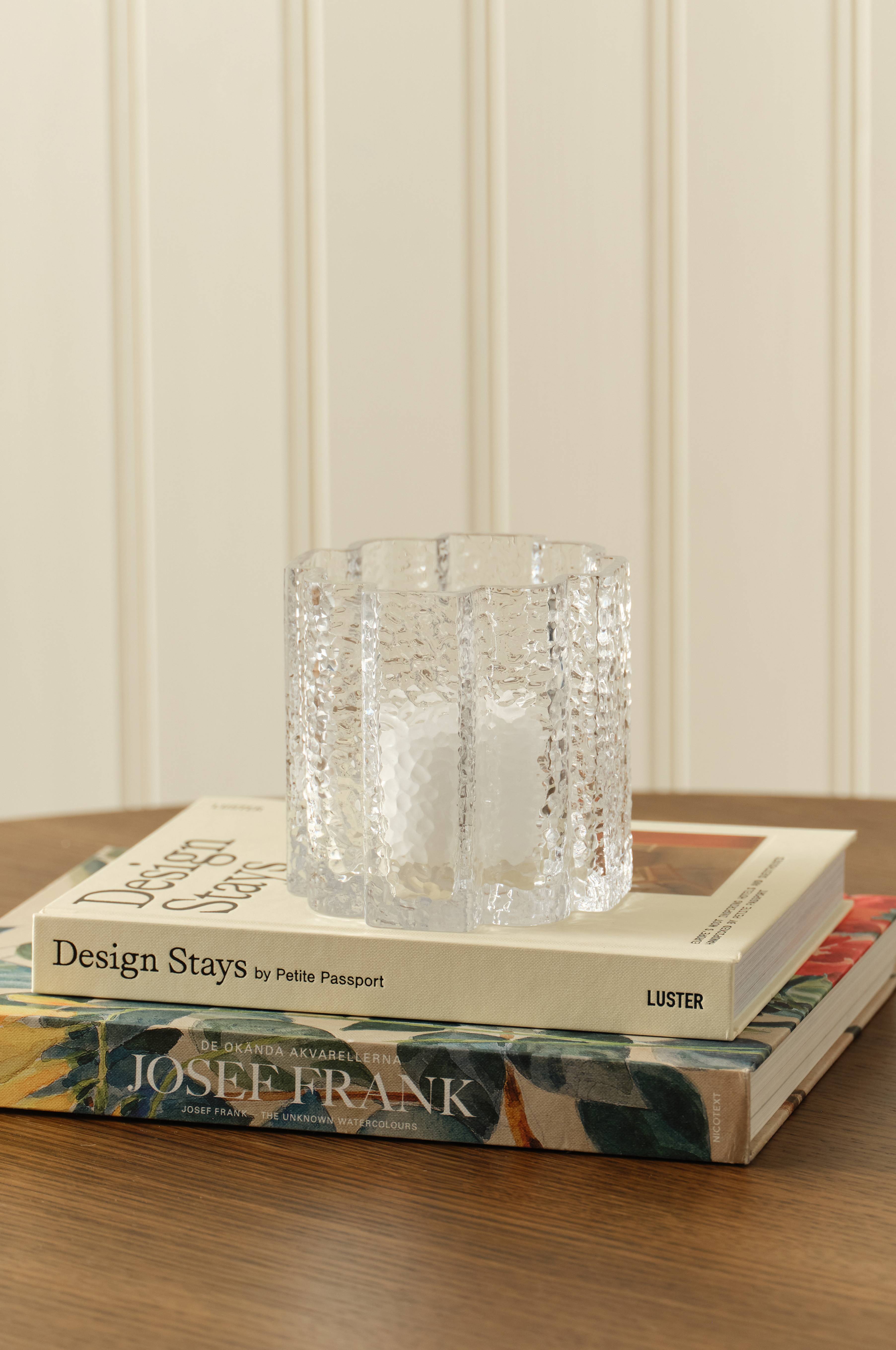 • Handgjord ljuslykta i glas med struktur• Böljande design