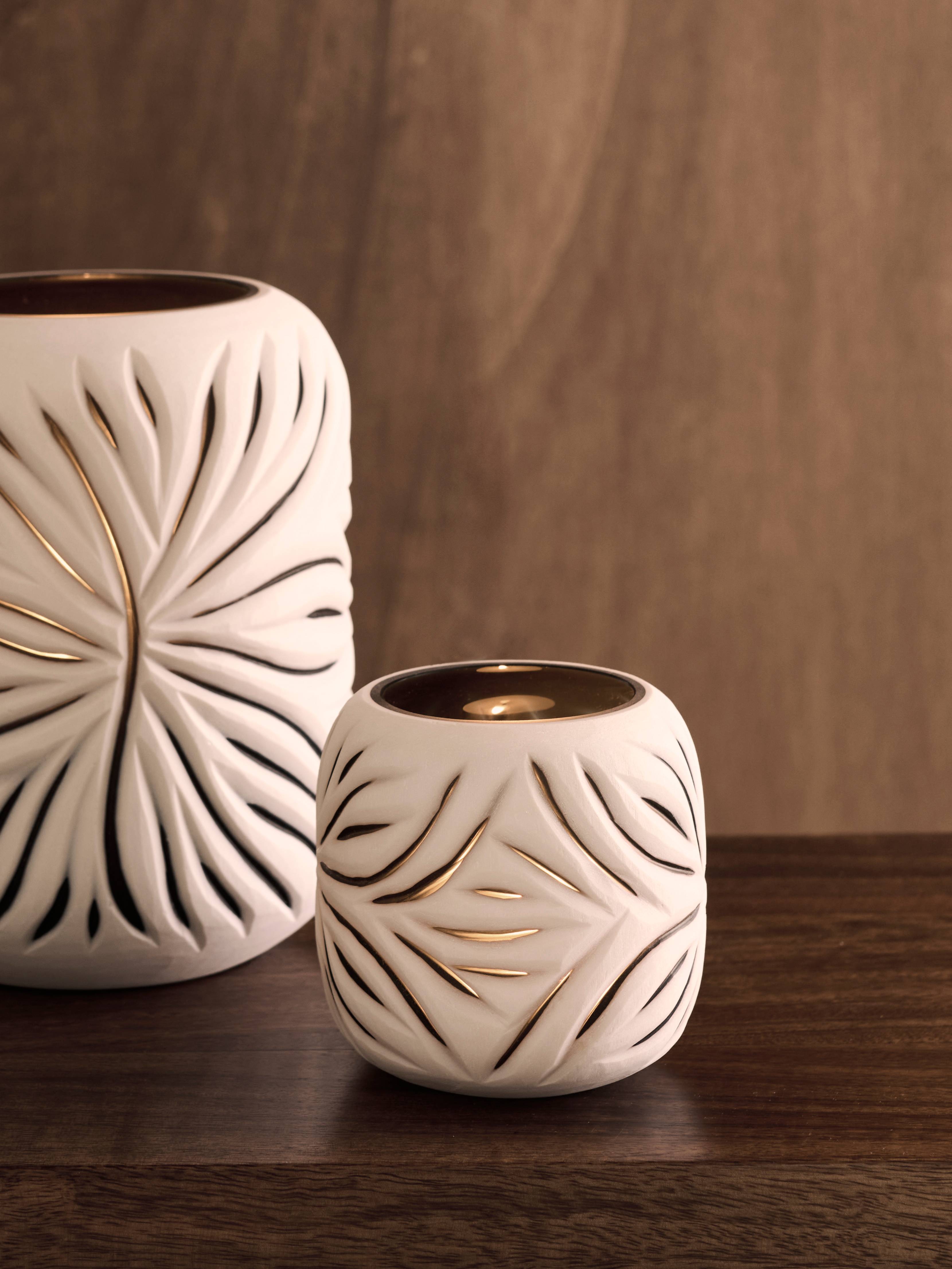Handgjord ljuslykta i munblåst glas. Handgjort strukturmönster med matt yta. För värmeljus.
